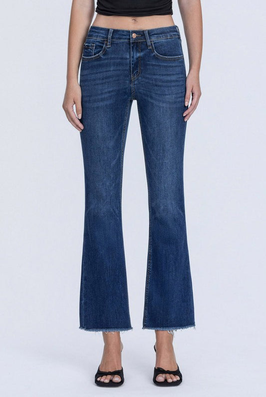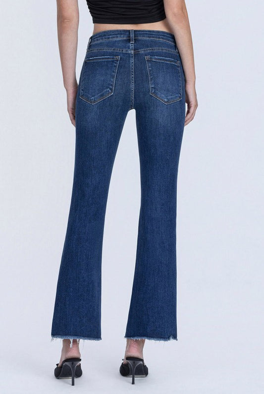 Lovervet Mid Rise Dark Wash Frayed Hem Kick Flare Jeans