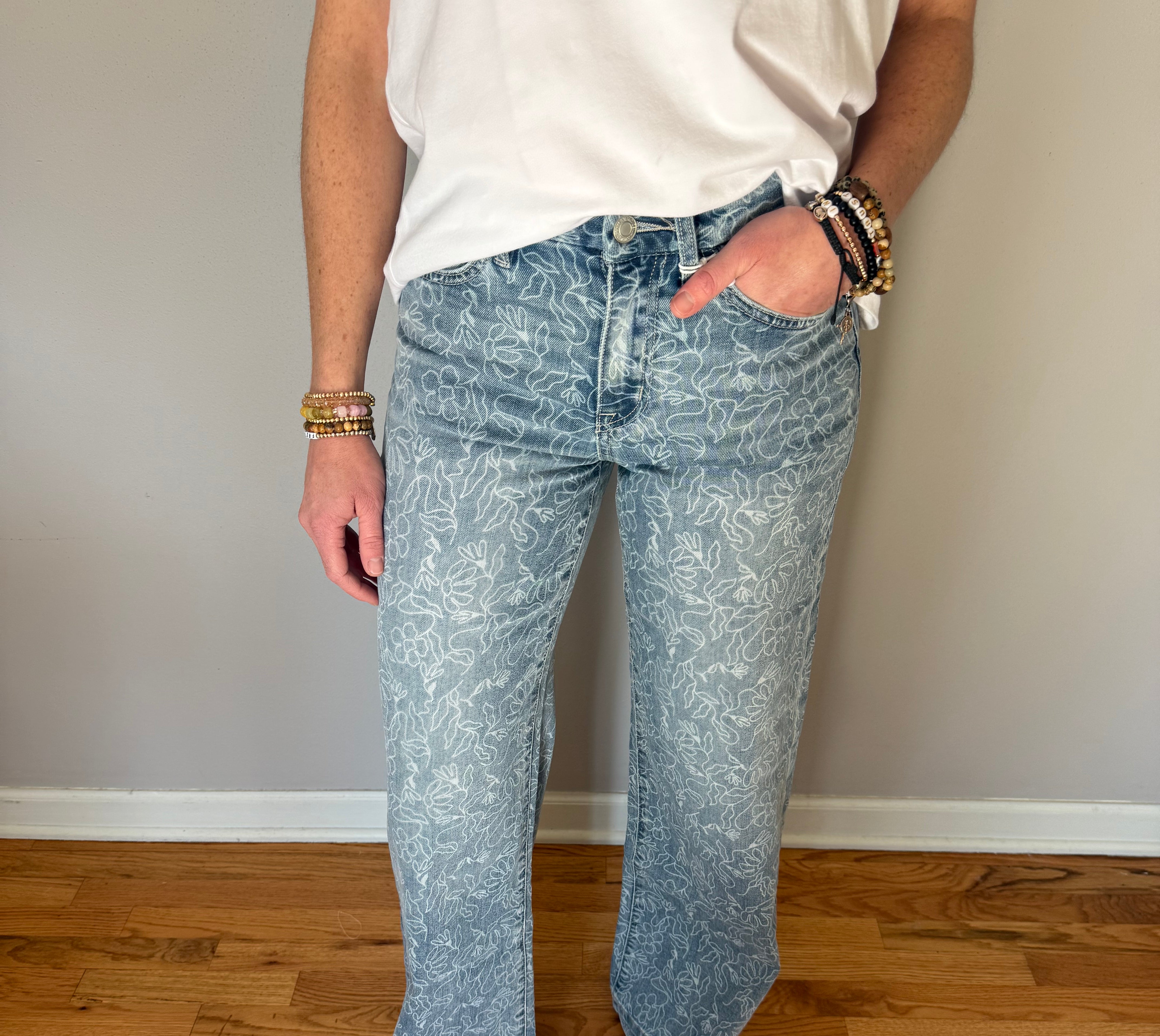 Vervet High Rise Medium Light Floral Print Wide Leg Jeans