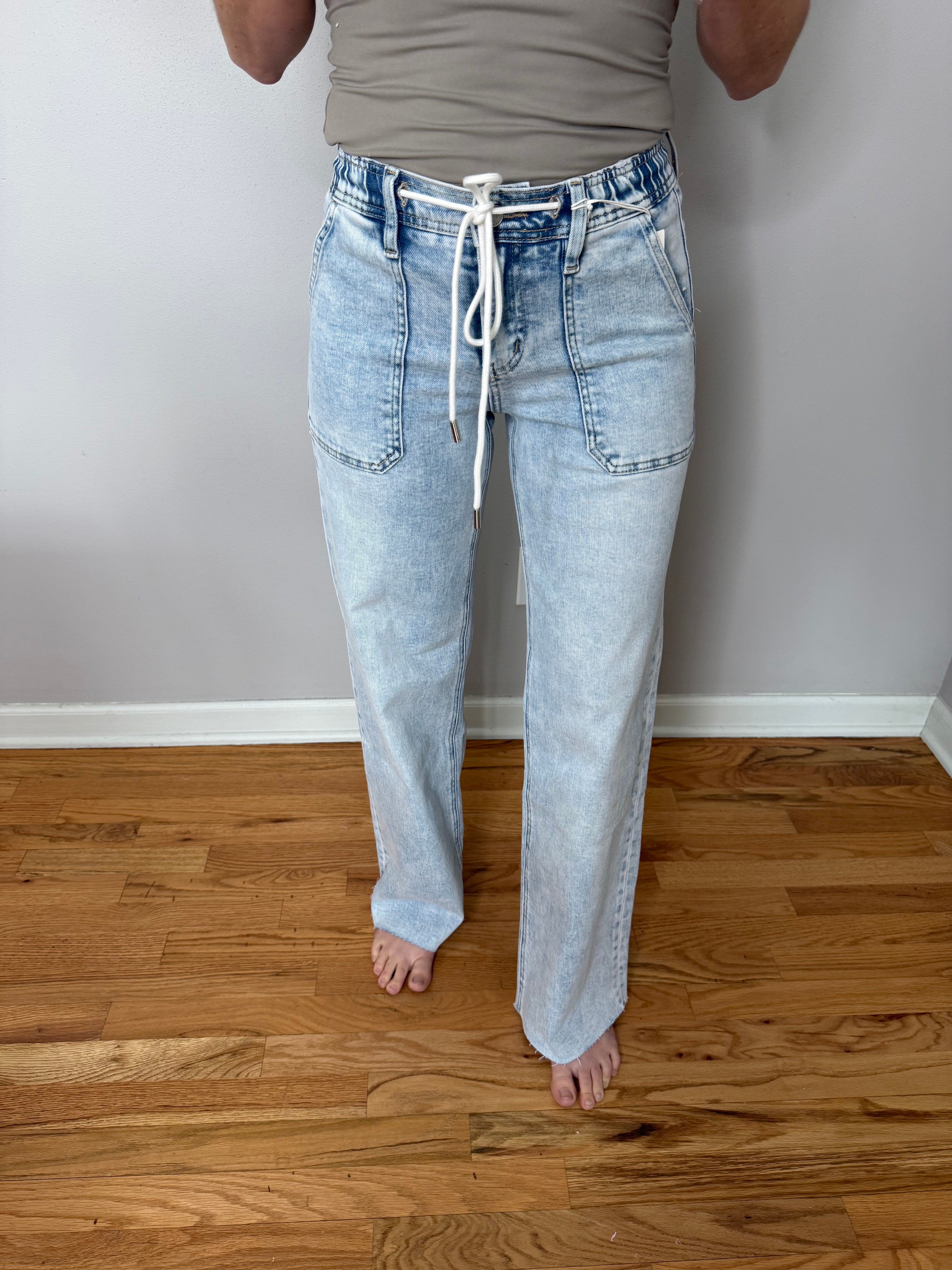 Lovervet - Chloe High Rise Drawstring Waistband Wide Leg Jeans