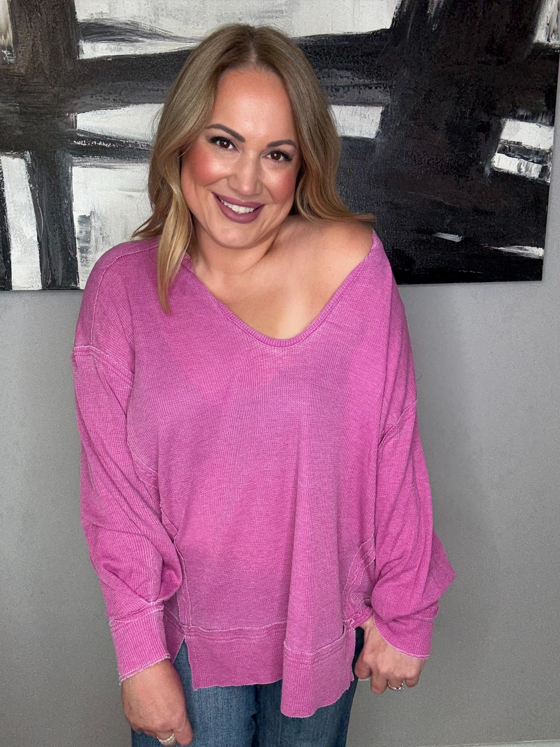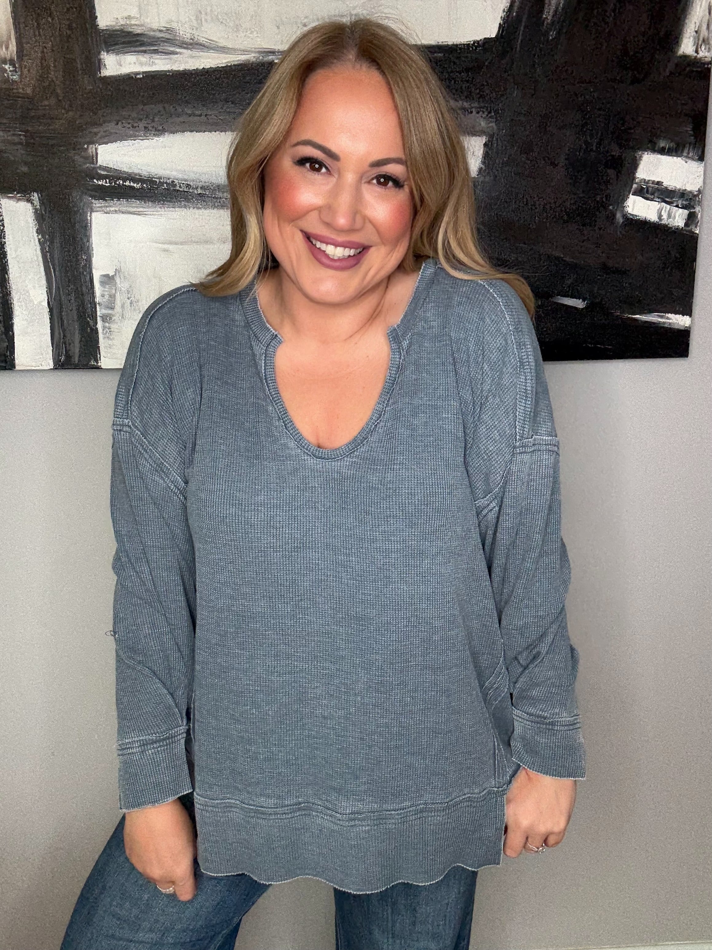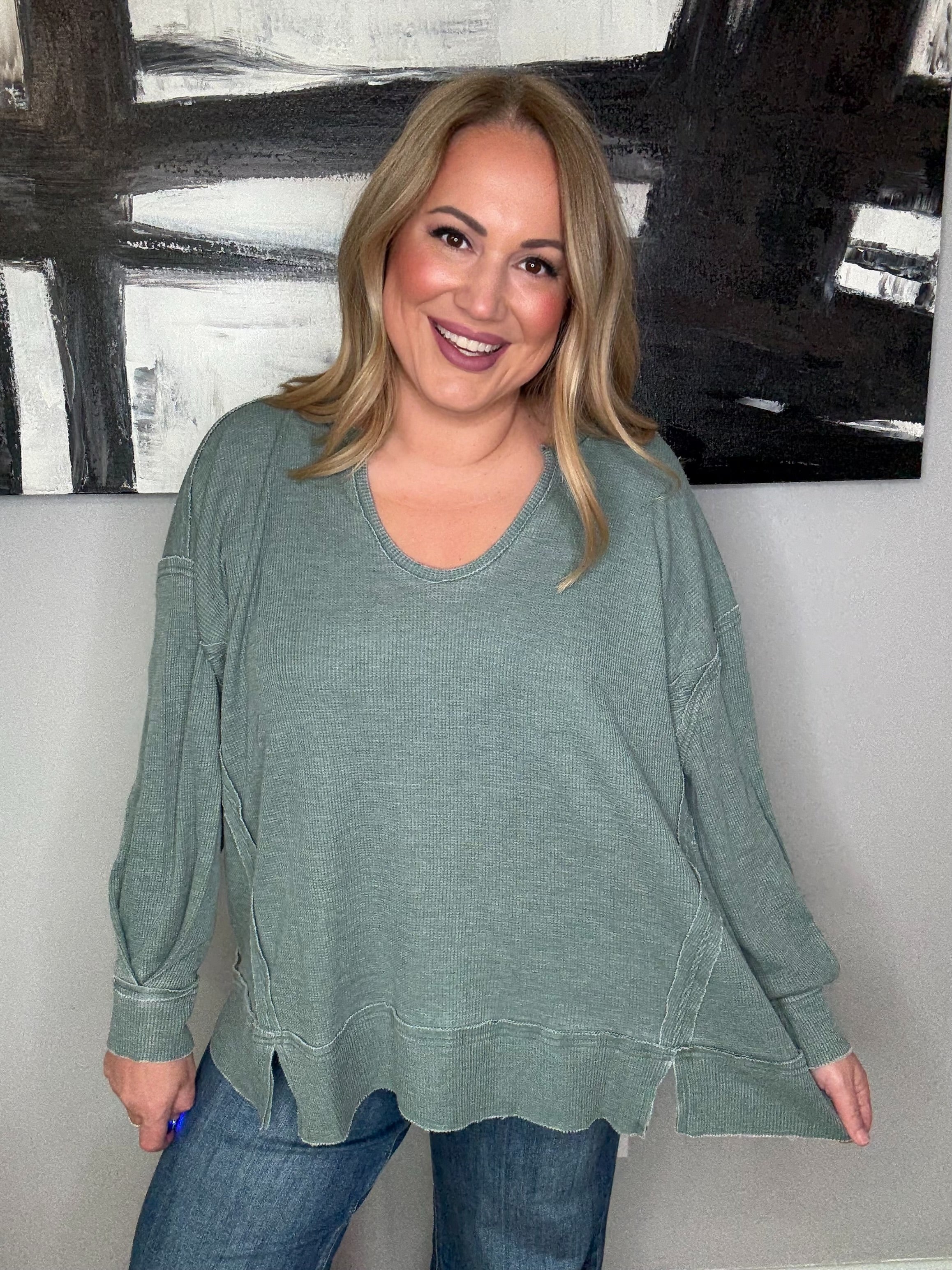 Cotton Blend Waffle Knit Oversized Long Sleeve