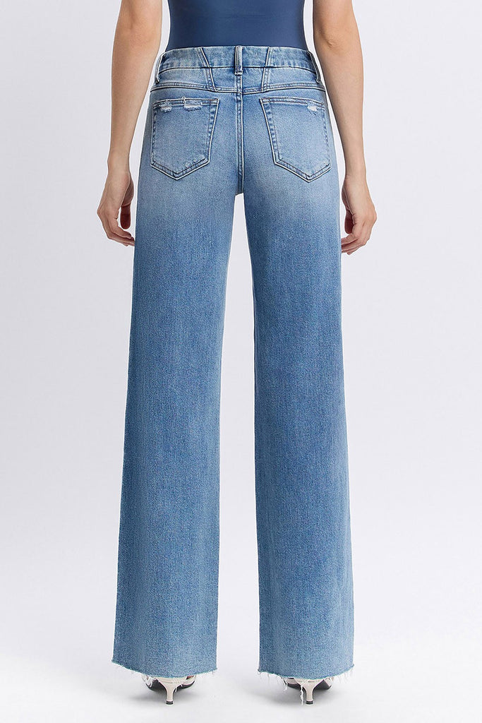 Vervet Mid Rise Medium Wash Clean Cut Raw Hem Wide Jeans