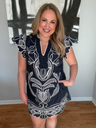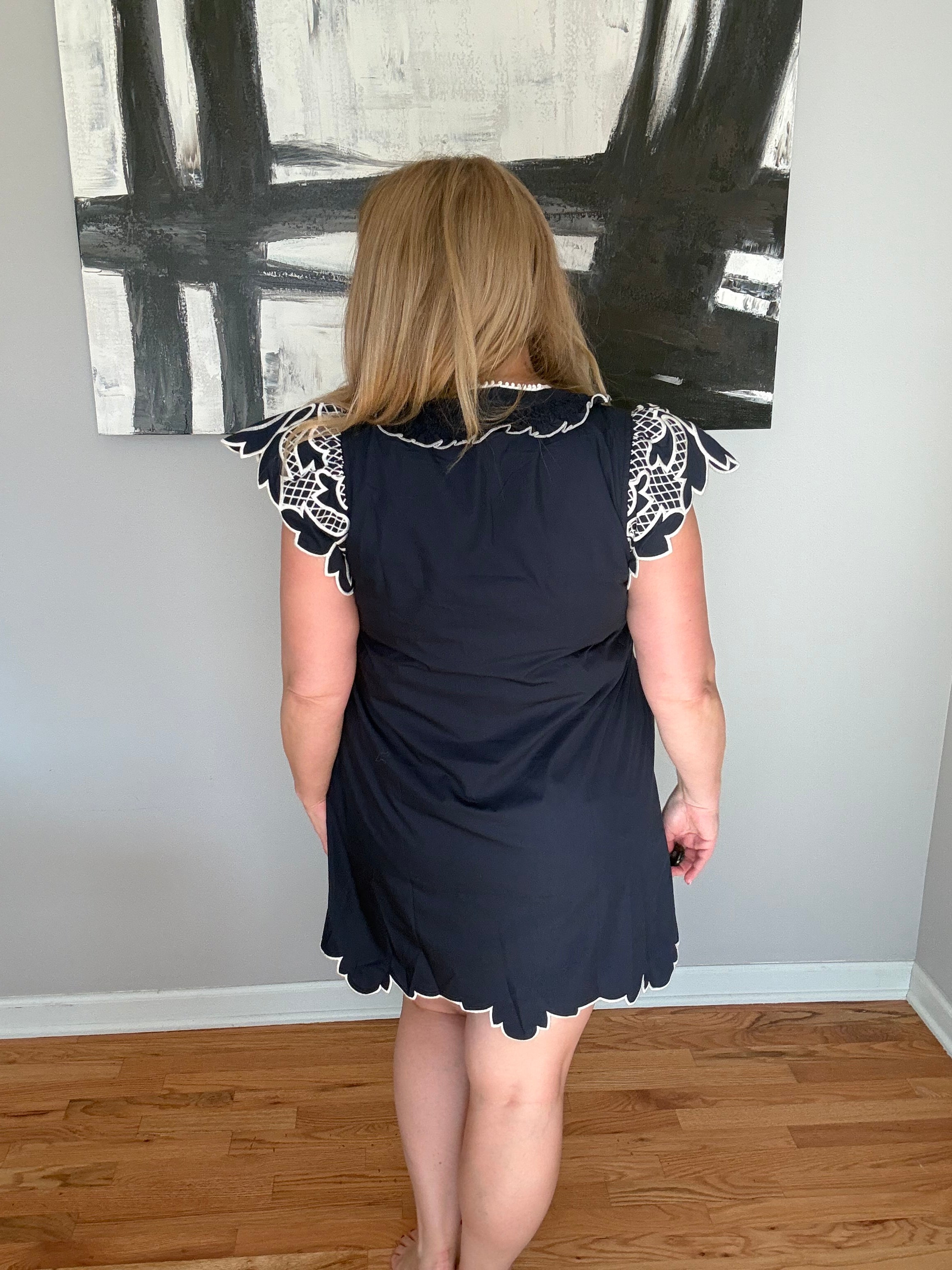 Navy Embroidered Design Dress