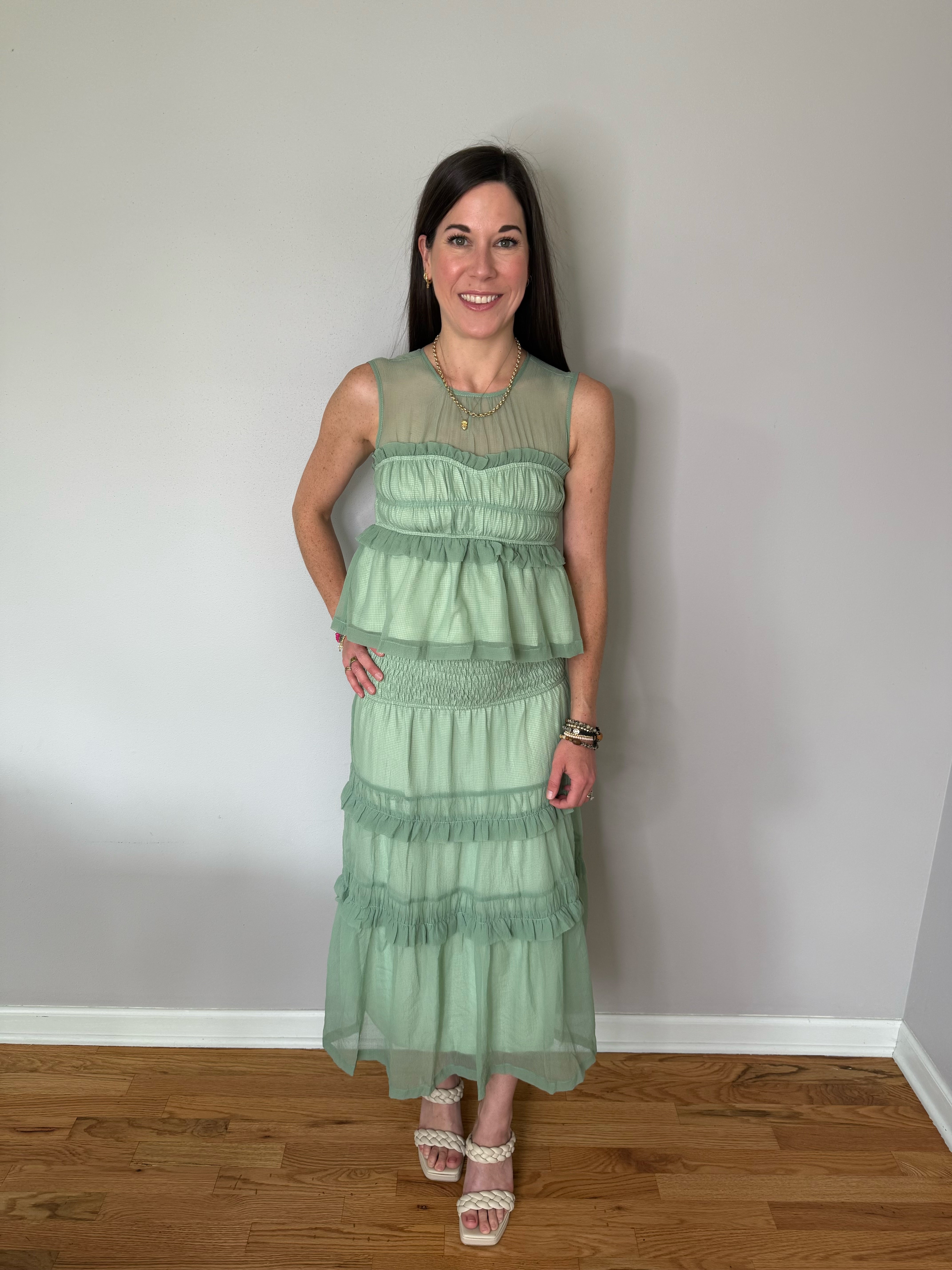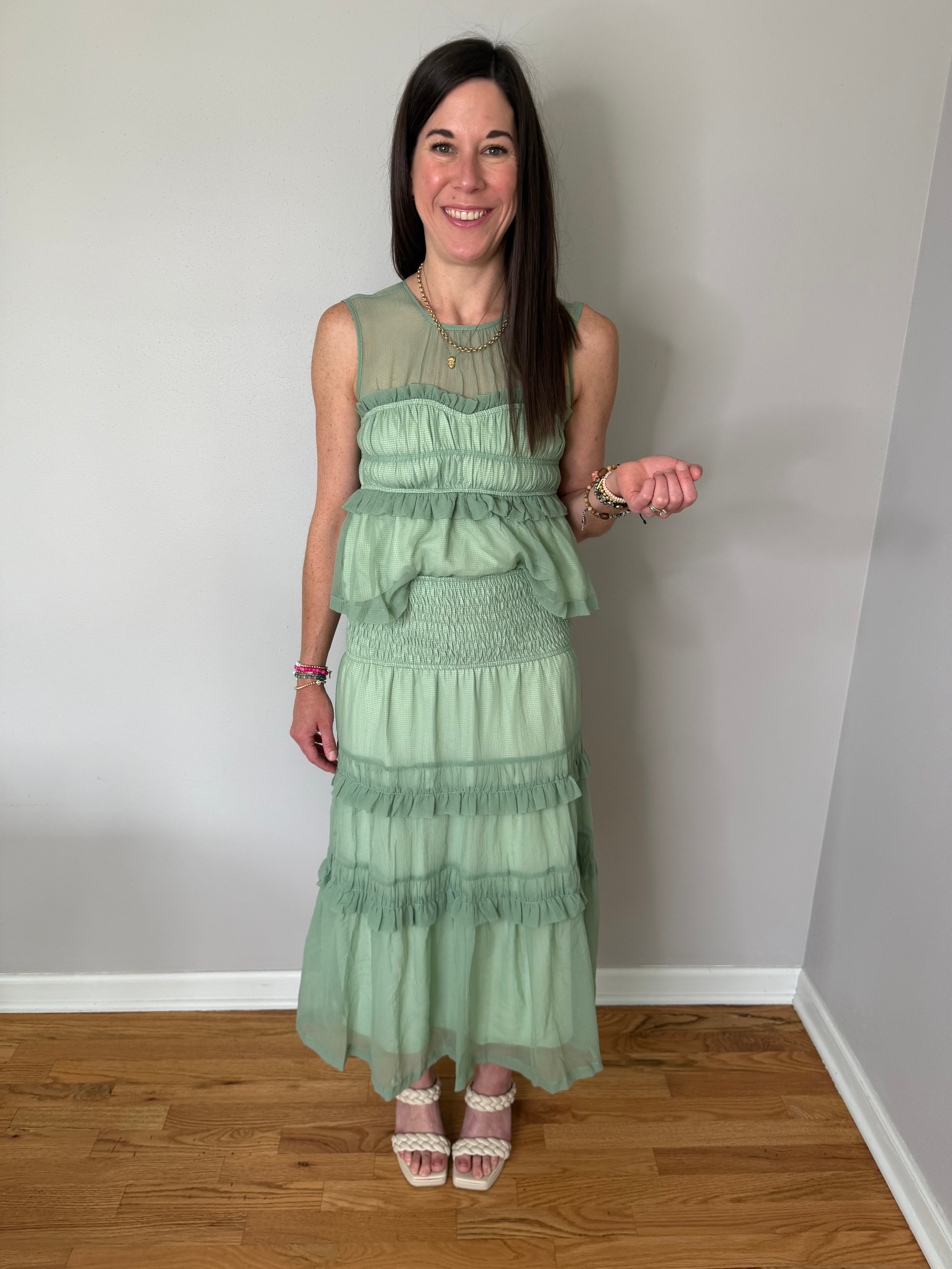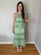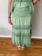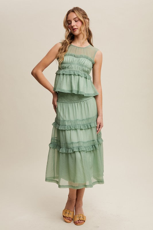 Sage Peplum Top And Smocked Ruffle Tiered Skirt Set