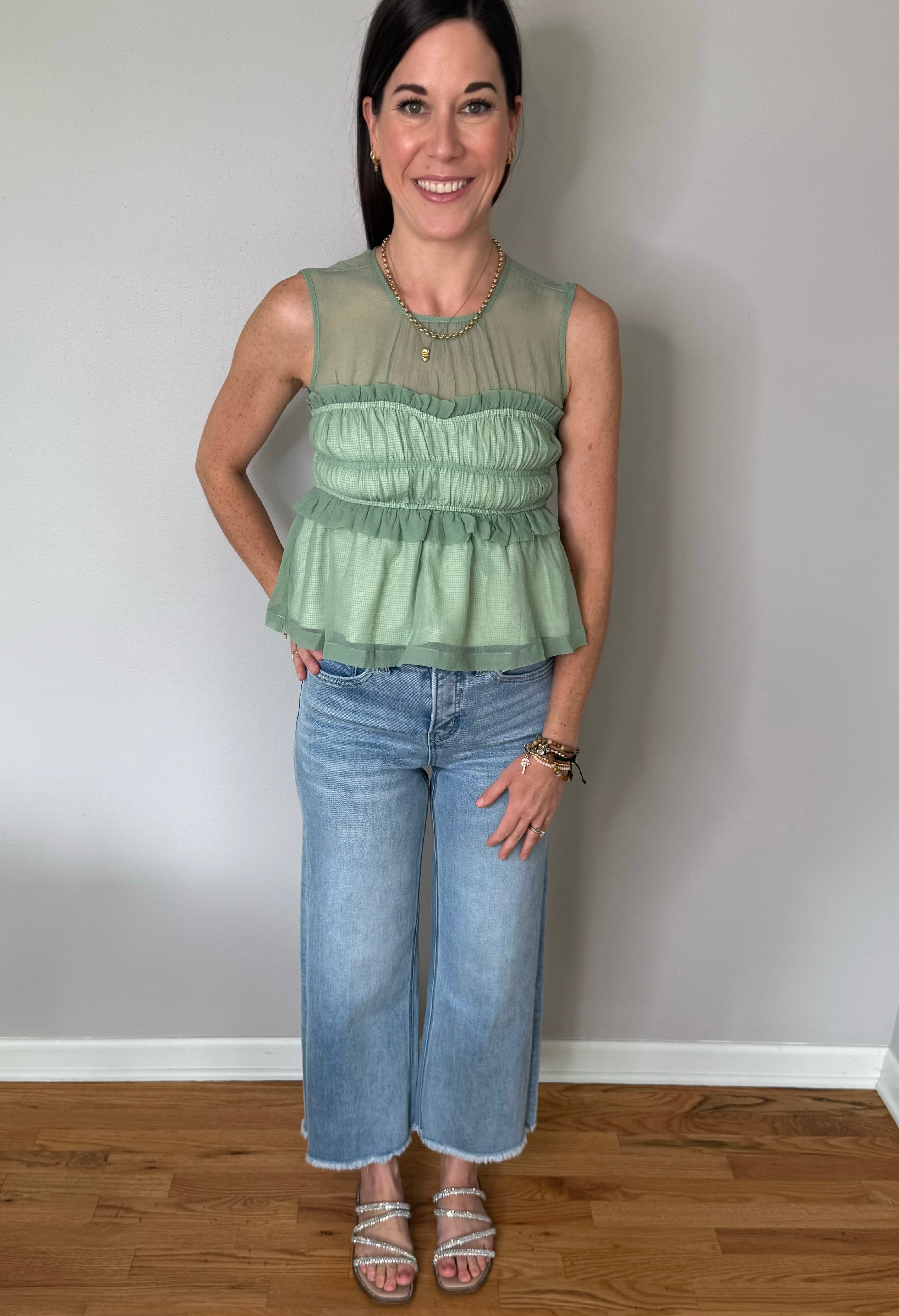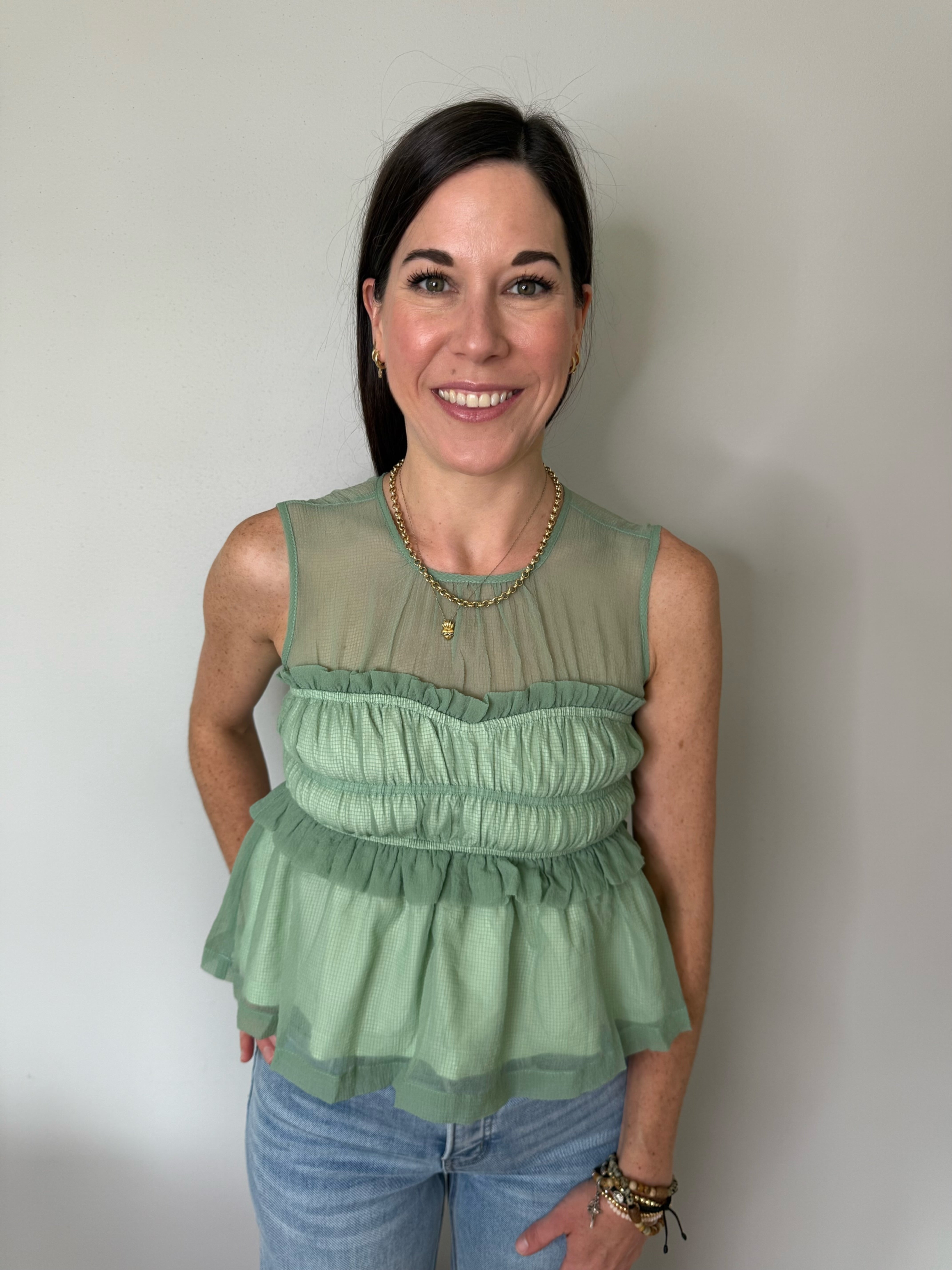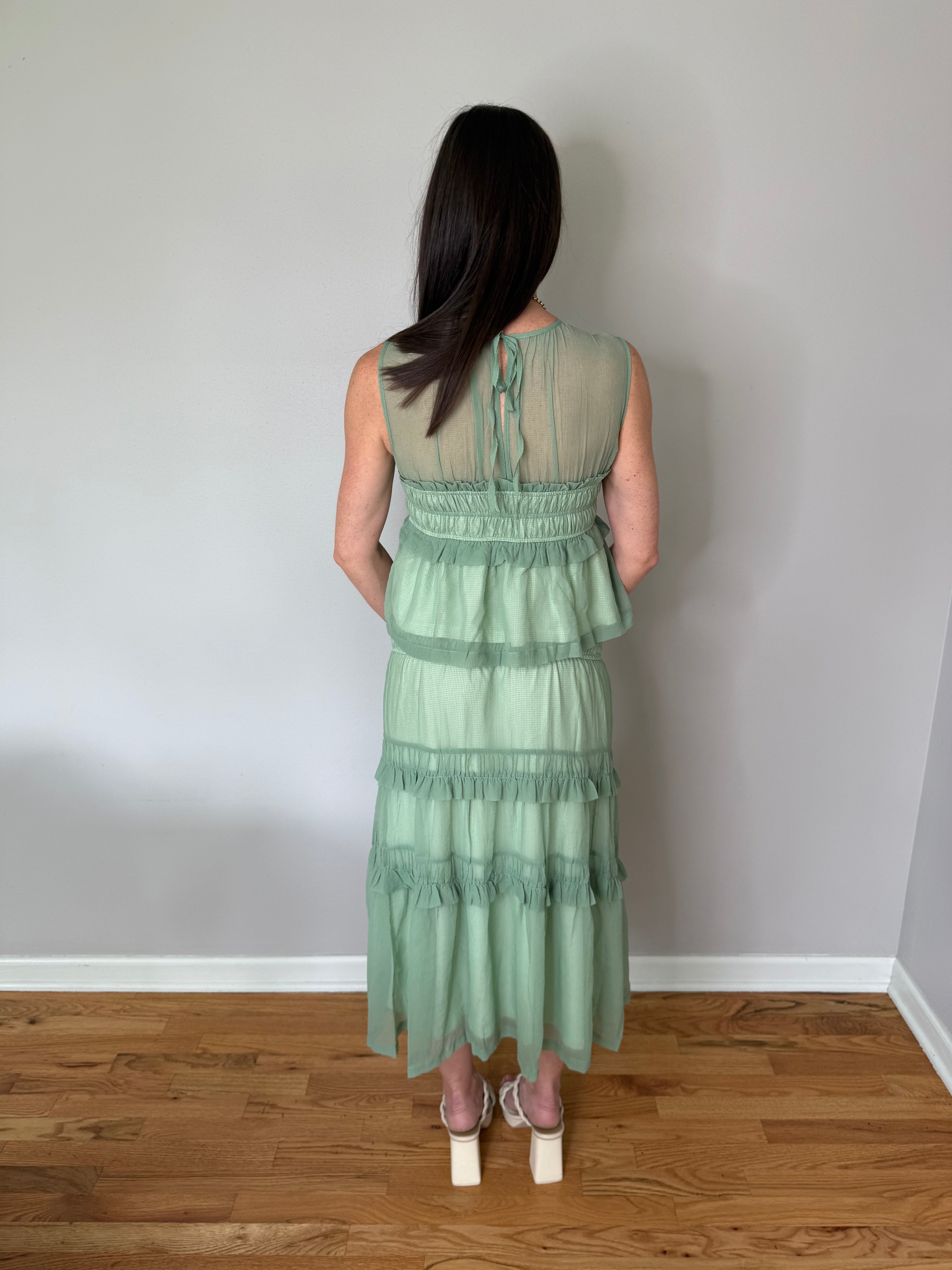 Sage Peplum Top And Smocked Ruffle Tiered Skirt Set