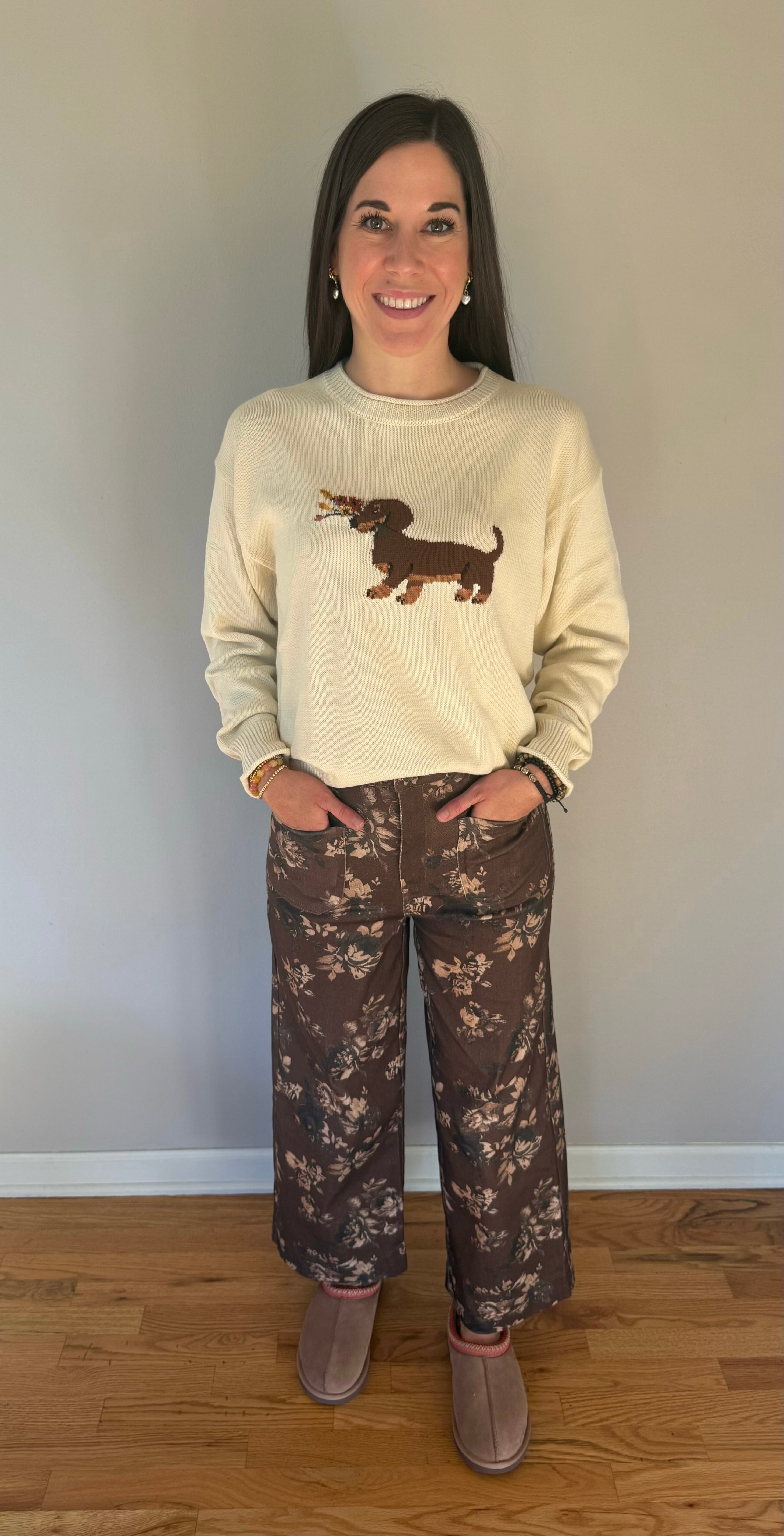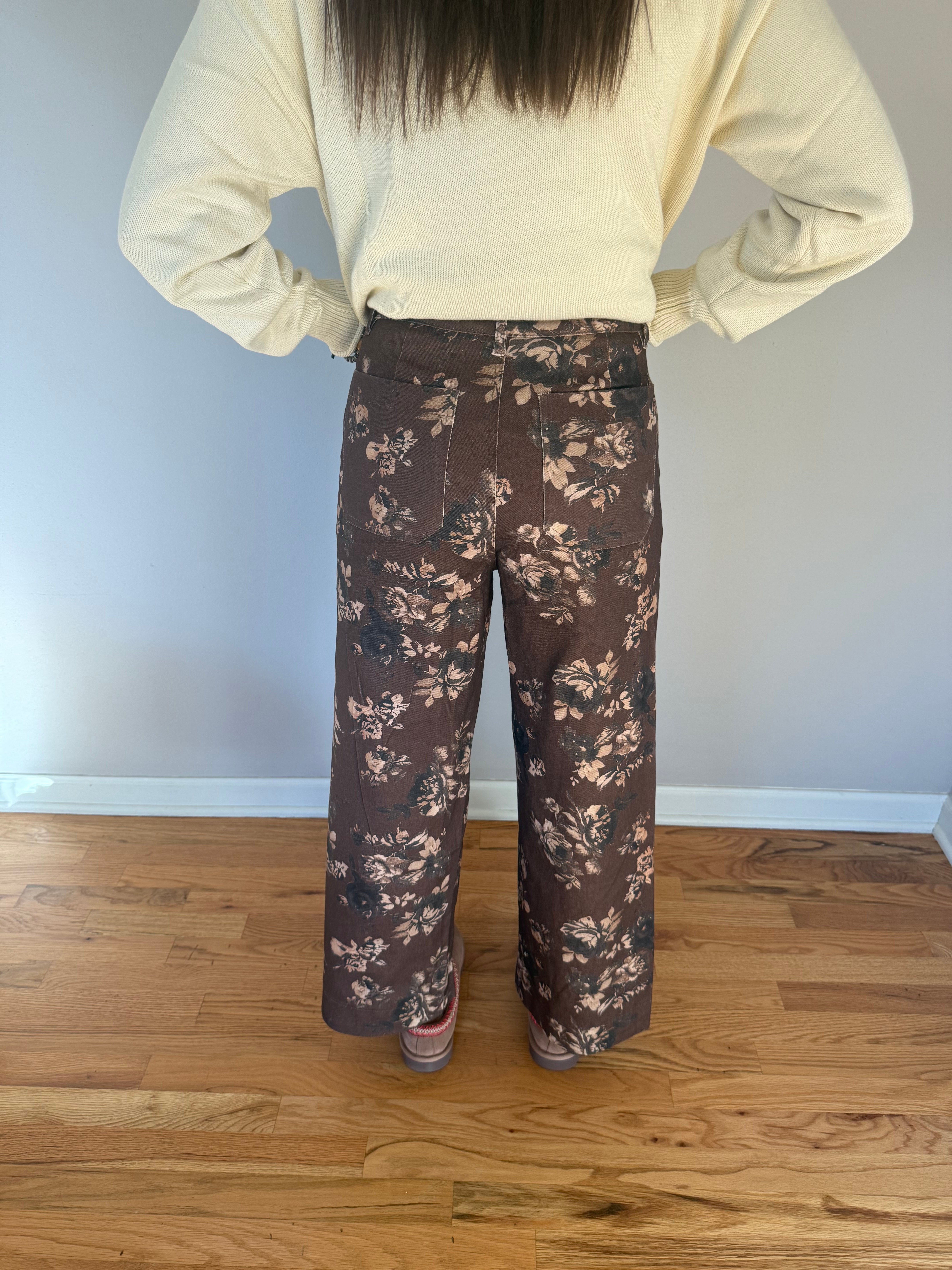 Floral Pattern Mid-Rise Pants