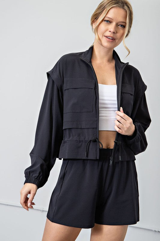Crinkle Woven Fabric Athleisure Jacket