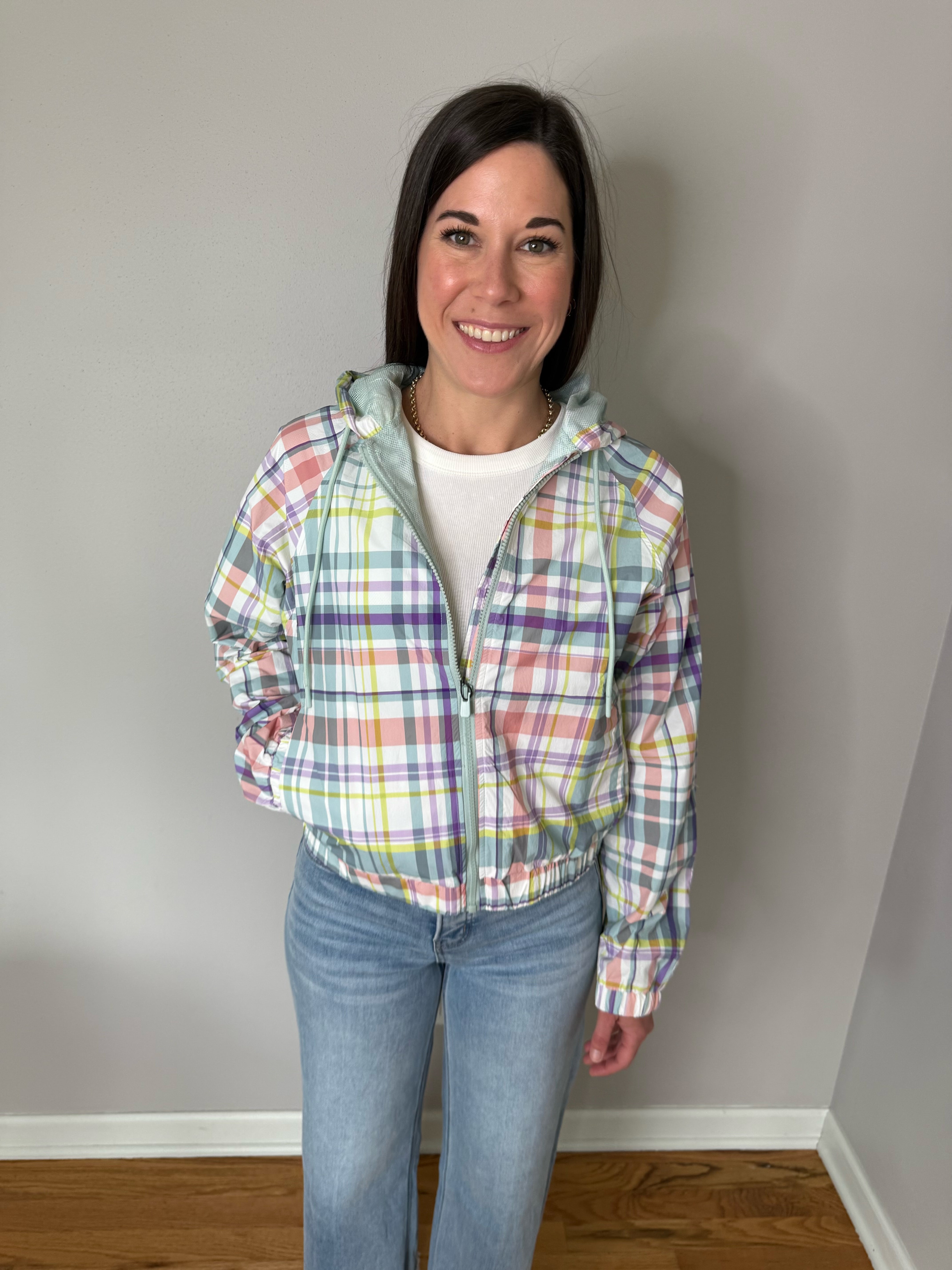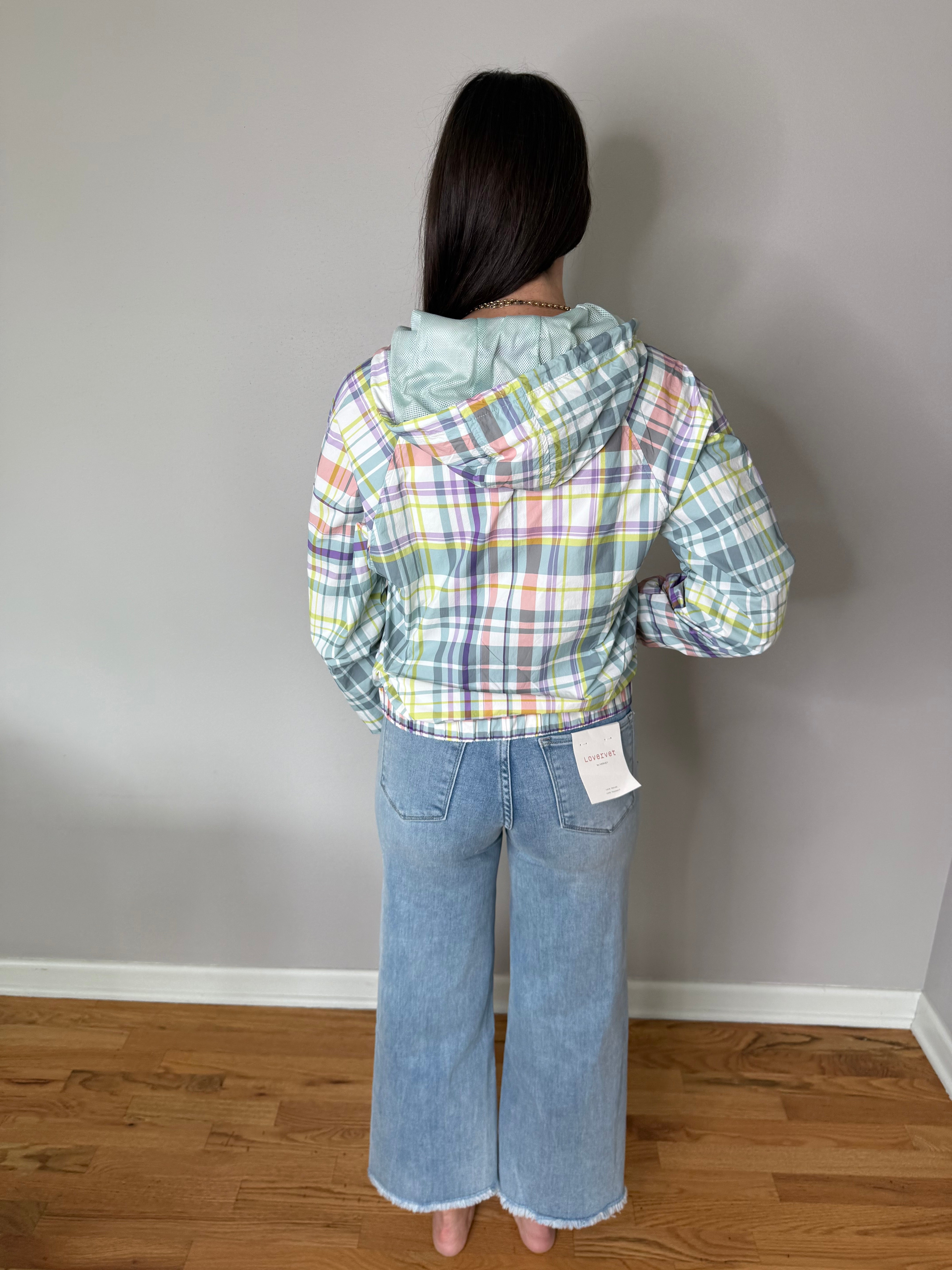 Mono B Water Resistant Plaid Windbreaker