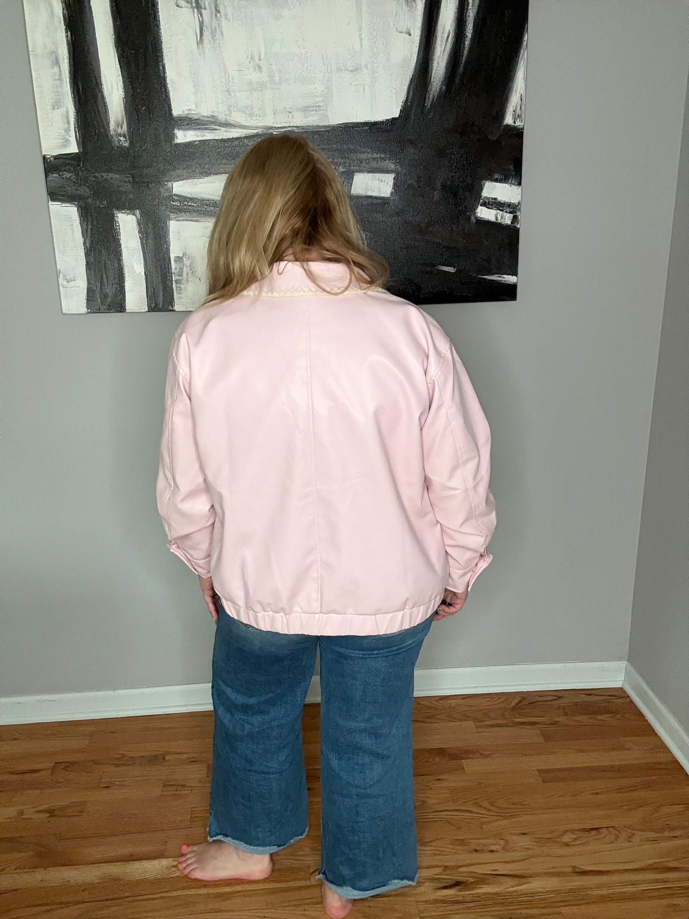 Pink Faux Leather Bomber Jacket