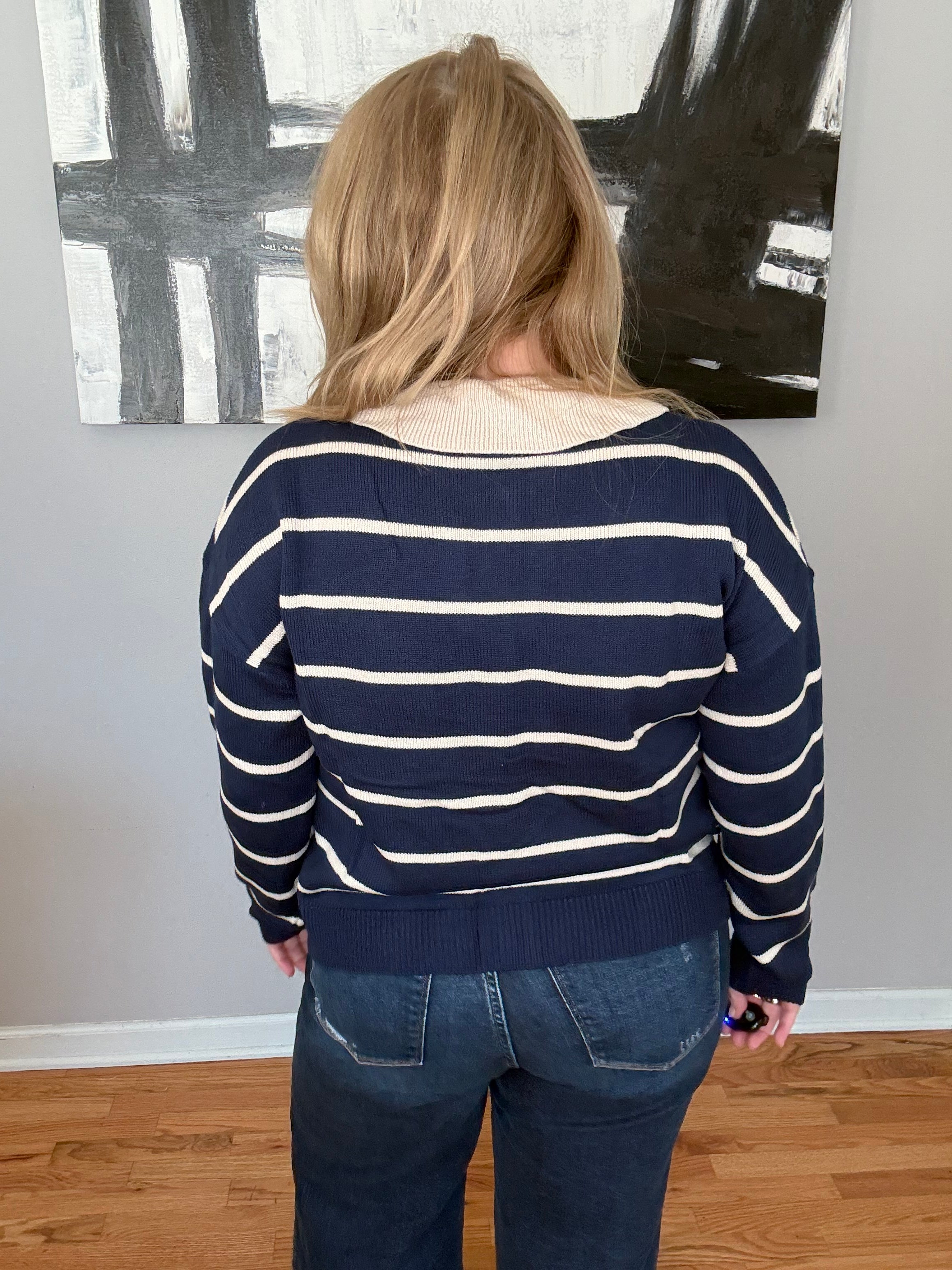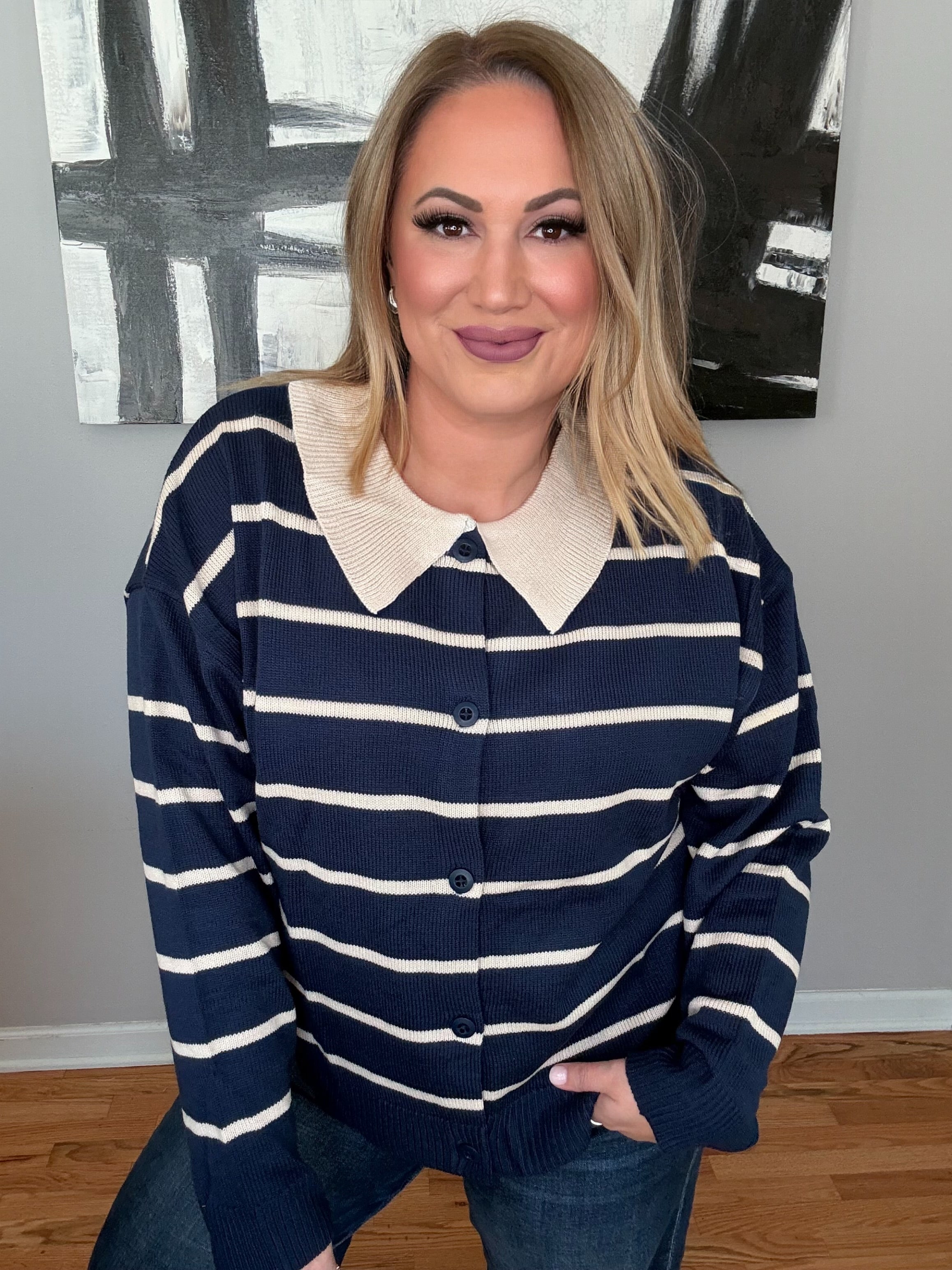 Why Kasey picked this: Loving the collar detail. Comfy and trendy with the stripes. So cute on!