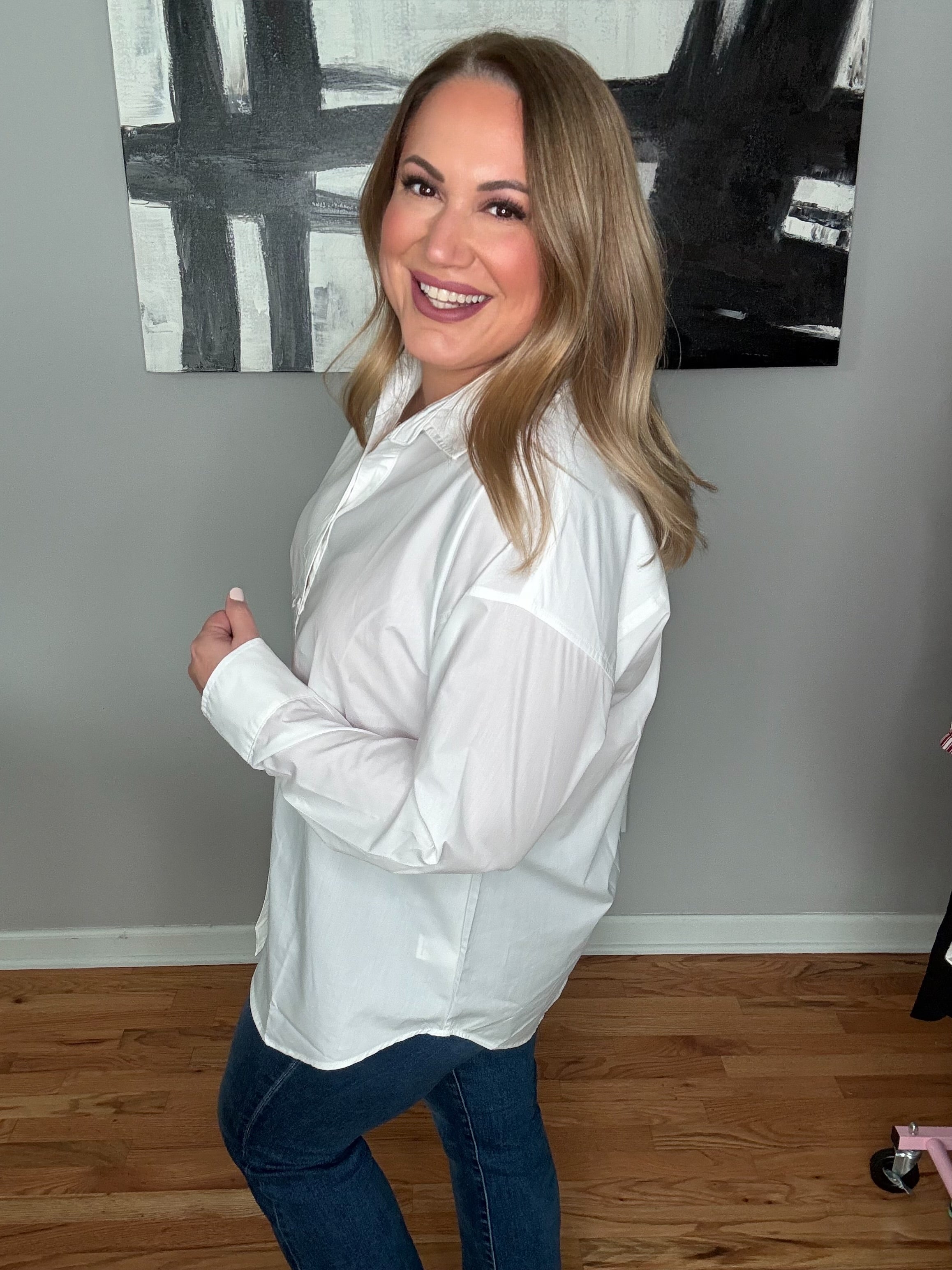 Why Kasey Picked This: The perfect crisp white button down. The material is 10/10.