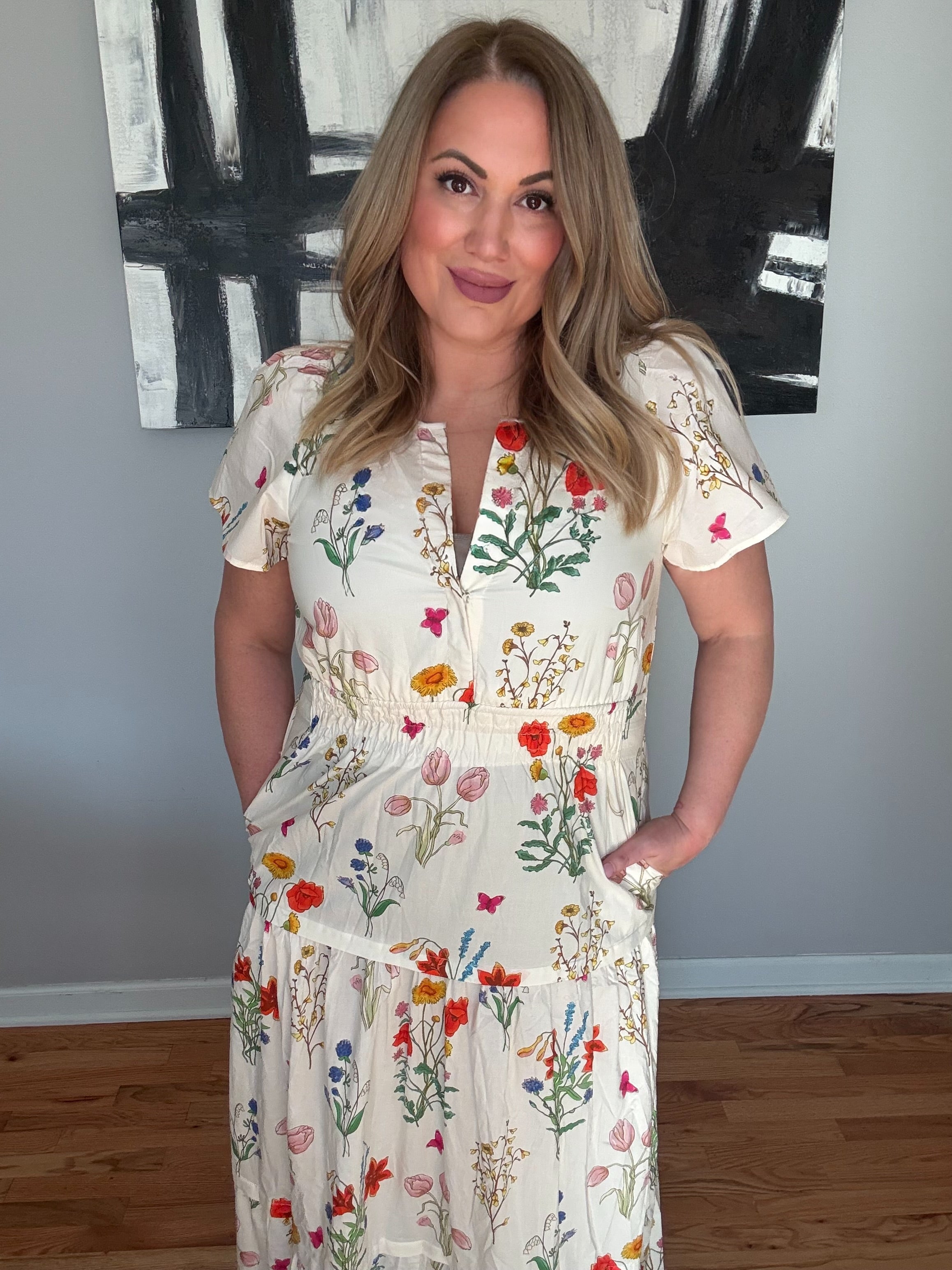 Floral Print Maxi Dress with Pockets