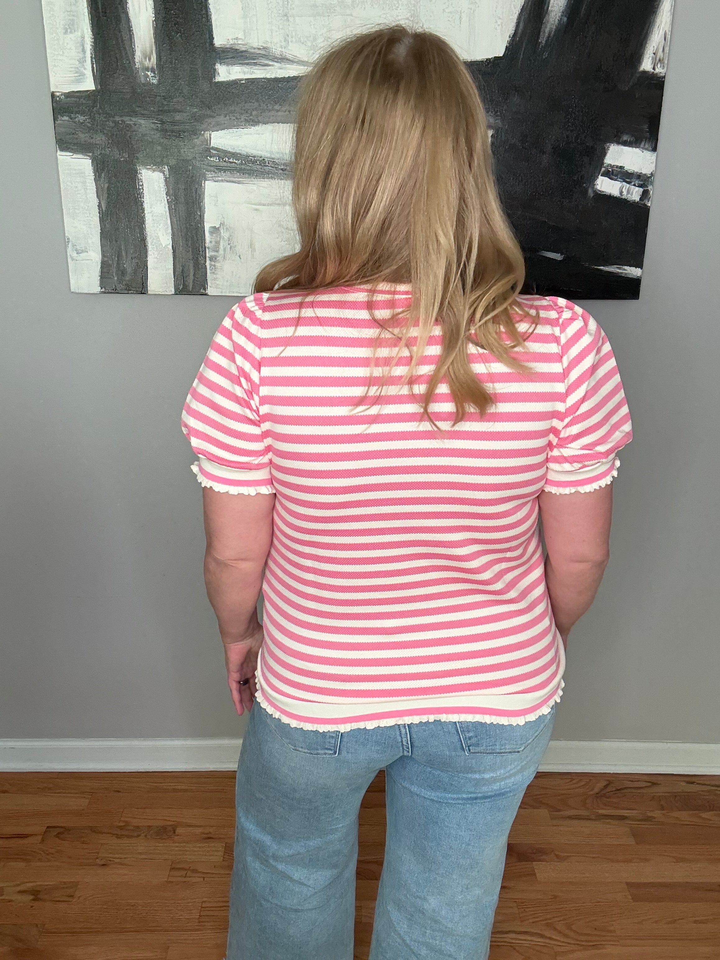I Know You Striped Puff Sleeve Rib Band Top