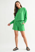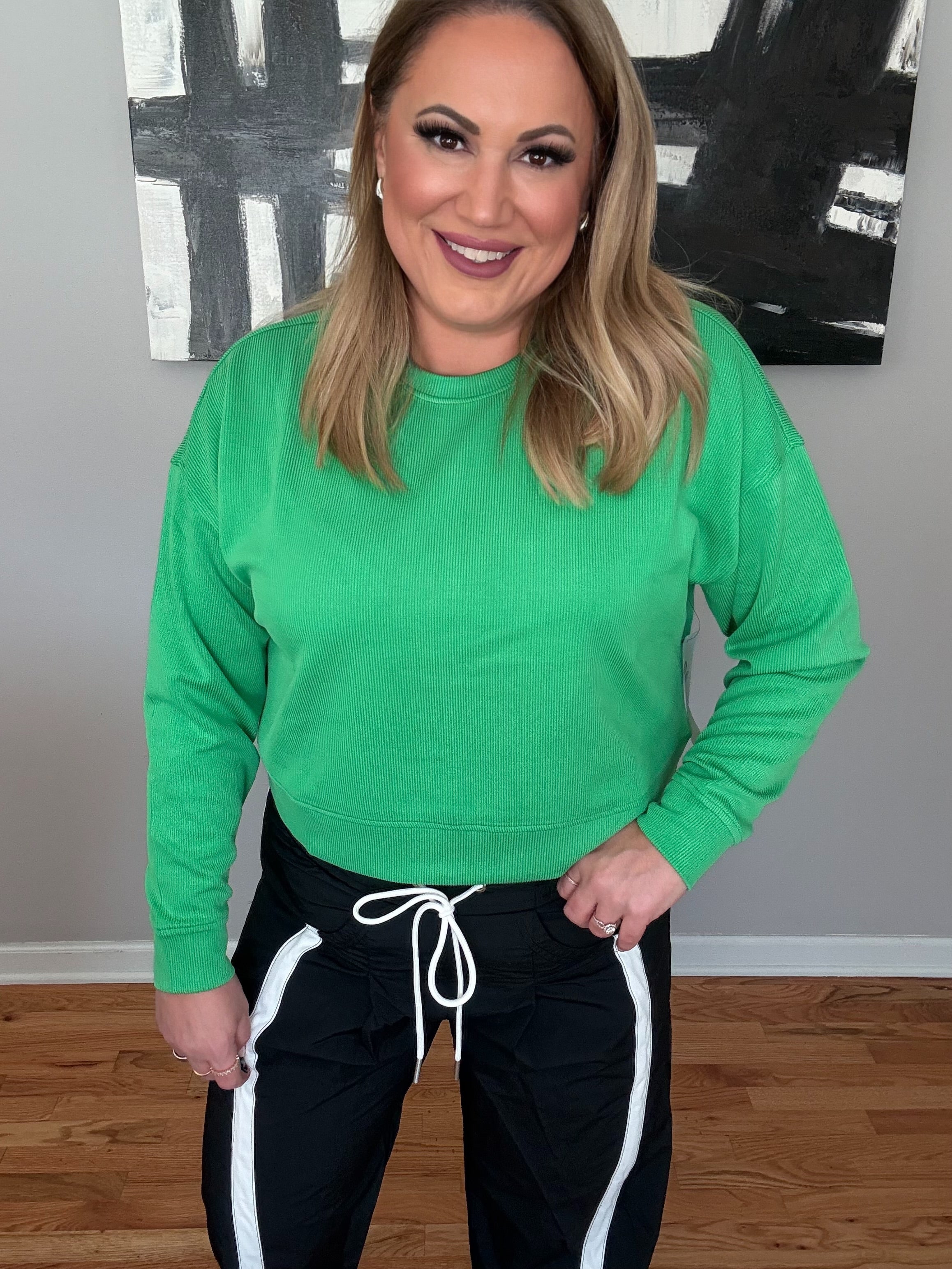 Why Kasey picked this: The fabric will wash well and doesn't pill. It is a nice thicker, high-quality material. The pop of green is so flattering on people!