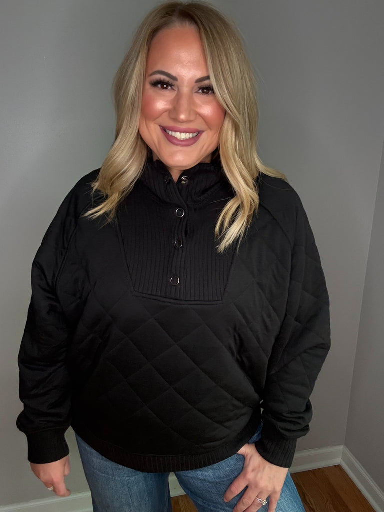 Experience exceptional comfort with the Quilted Snap Pullover, designed for effortless layering. Crafted from pillowy-soft quilted fabric, it delivers warmth without weight. The oversized, relaxed fit complements the mock neck with snap-button closure, providing adjustable coverage. Raglan sleeves ensure unrestricted movement, while 4x2 ribbed trims at the neck, cuffs, and hem maintain shape and fit. Ideal for active days or casual outings, this pullover combines functionality and cozy style with expert precision.