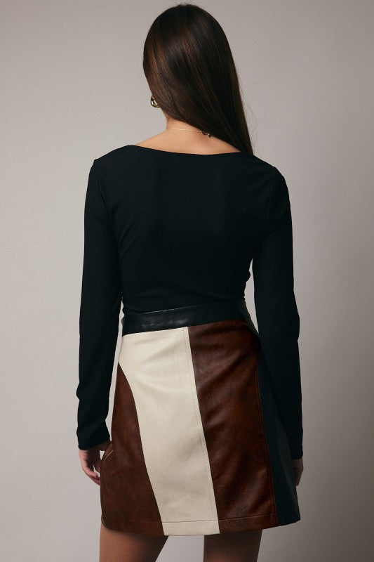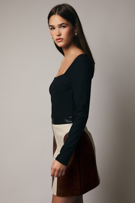 Scooped Neck Long Sleeve Nylon Rib Bodysuit