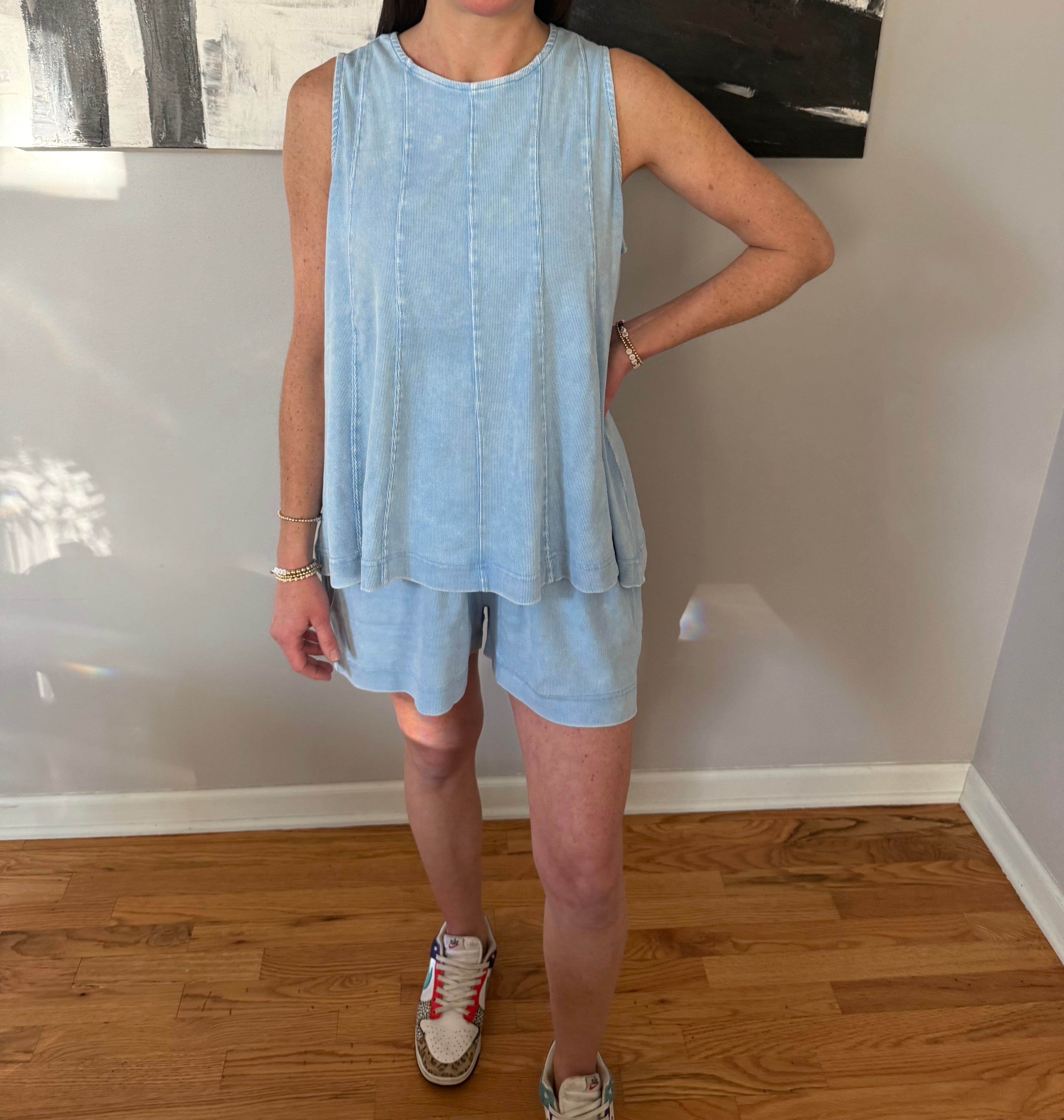 Why Kasey picked this: The ULTIMATE comfort set built for many body types and serves YOU. The pockets on the shorts are amazing, and the unique mineral washed fabric feels like Luxury.