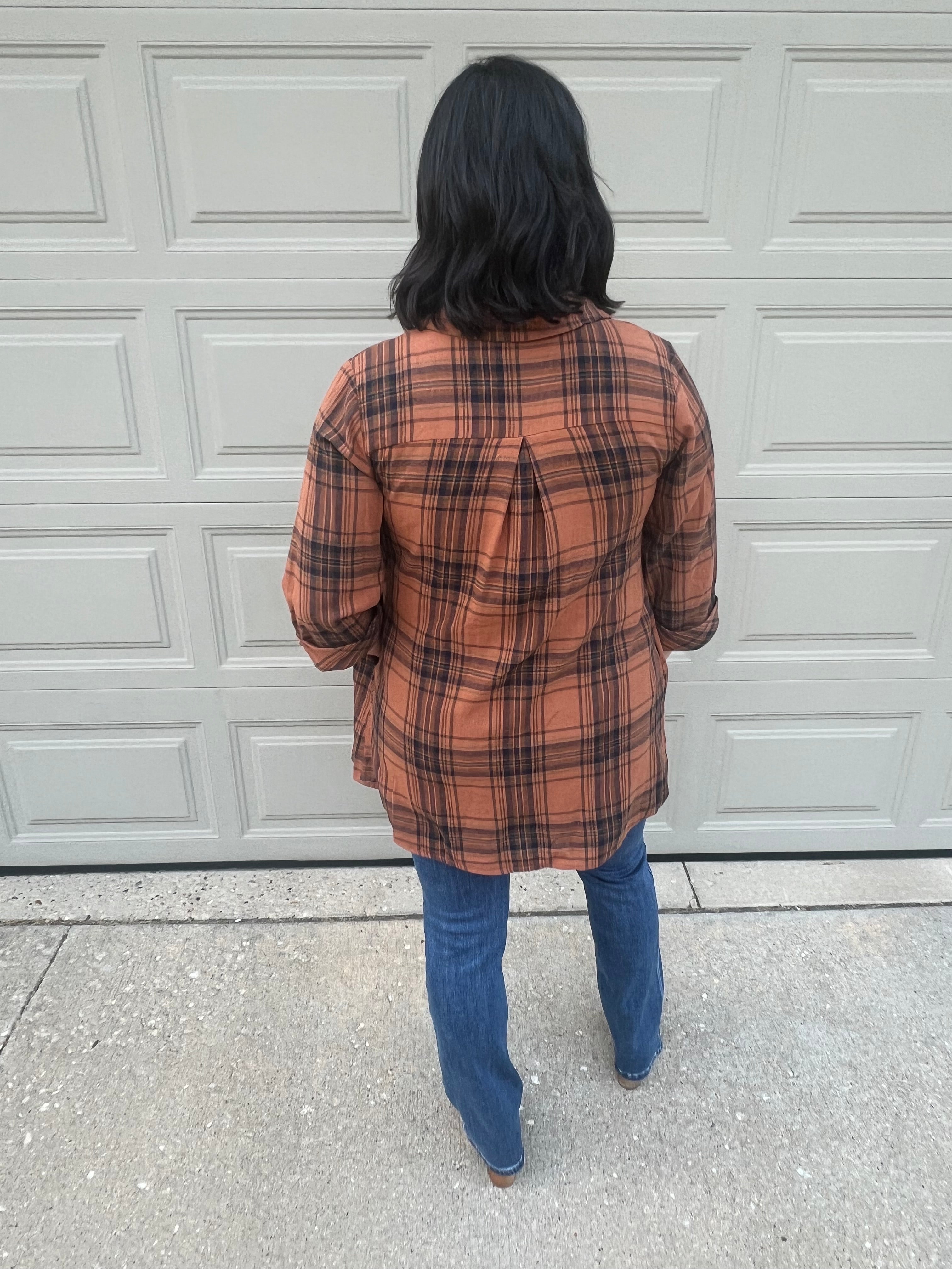 This Plaid Button-Down Tunic features a relaxed and loose fit, perfect for a comfortable yet stylish look. The 3/4 sleeves and collared neckline add a touch of sophistication, while the button down front and cuffs allow for versatile styling. Has pockets!!! Would look so cute with leggings or denim.