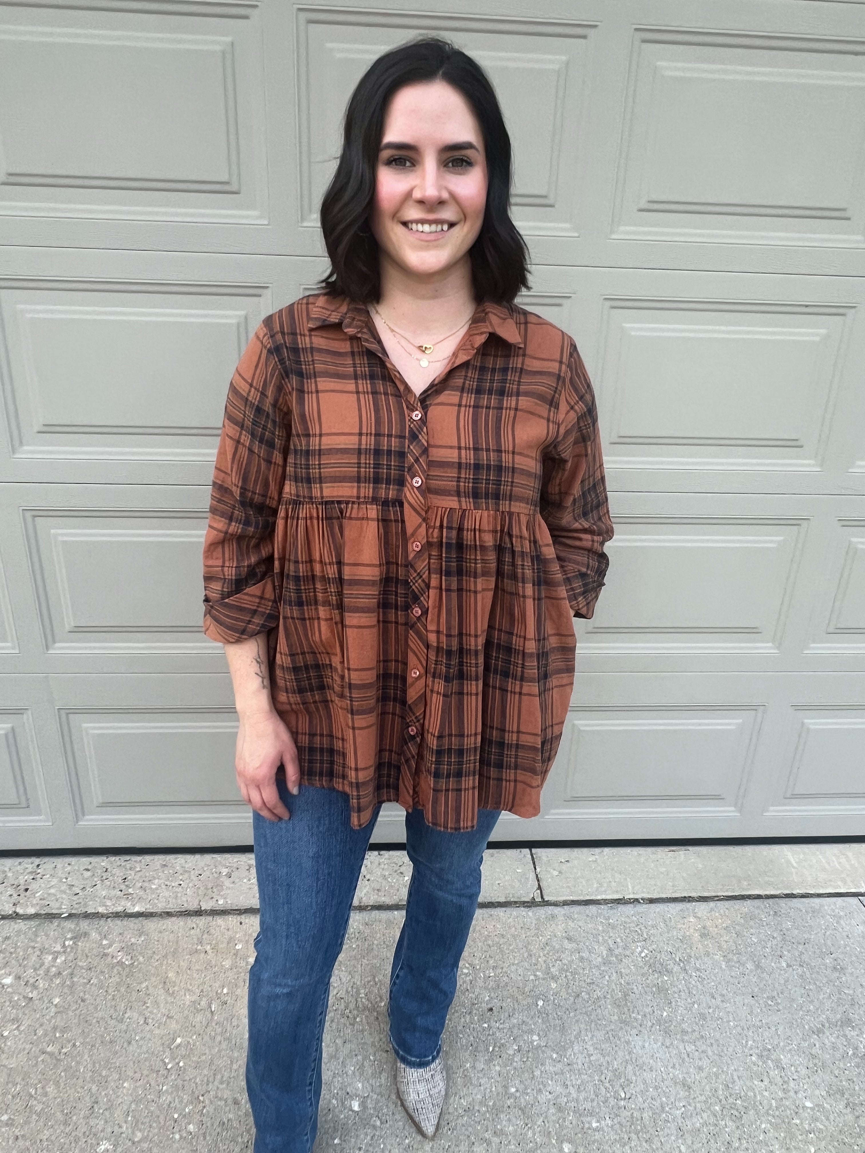 Easel Plaid Button Down Tunic