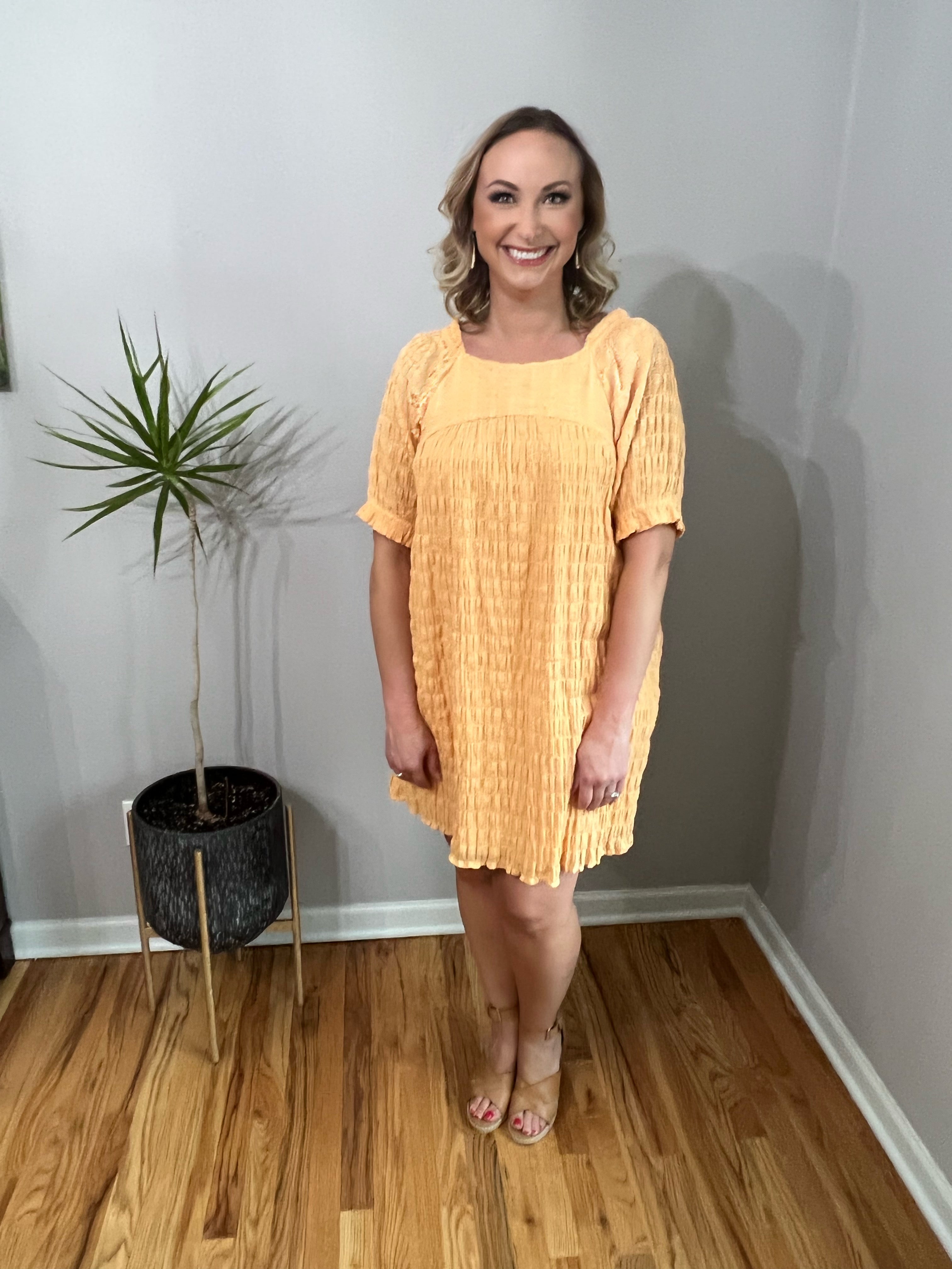 Comfy, casual and you know it - easy to wear! Amazing stretchable smocking like fabric. Square neckline with baby ruffle detail on the sides. Fully lined.