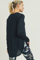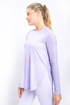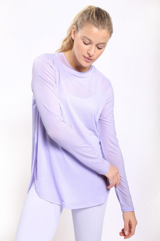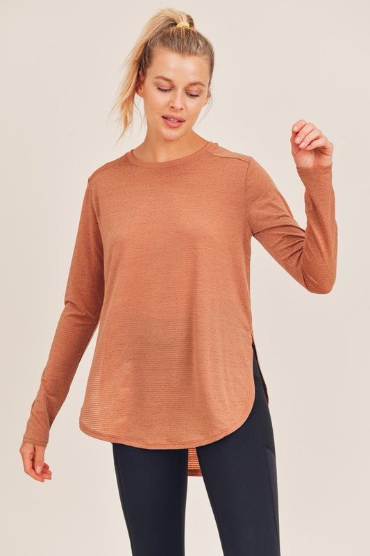 Ribbed Mesh Long Sleeve Flow Top with Side Slits