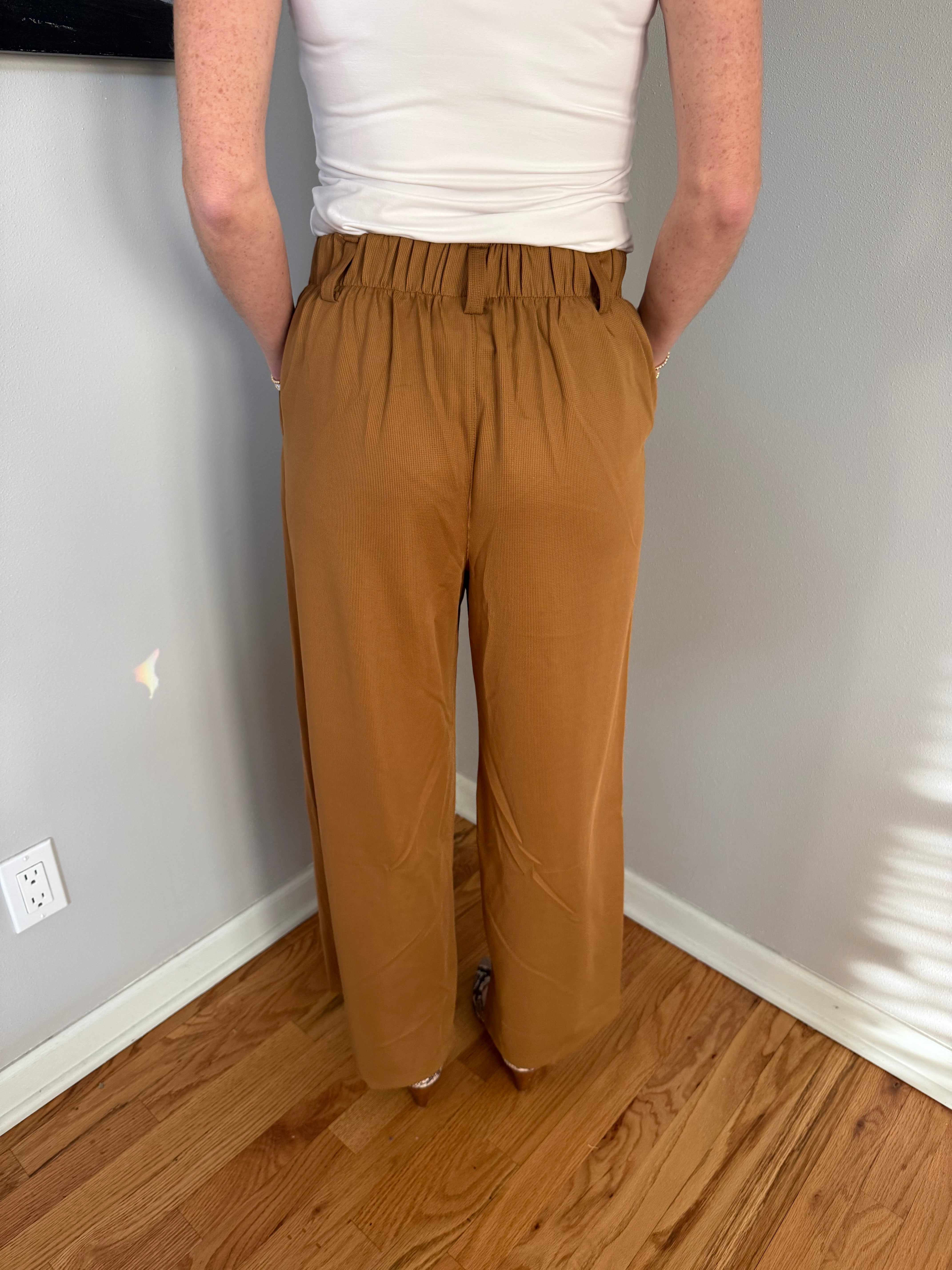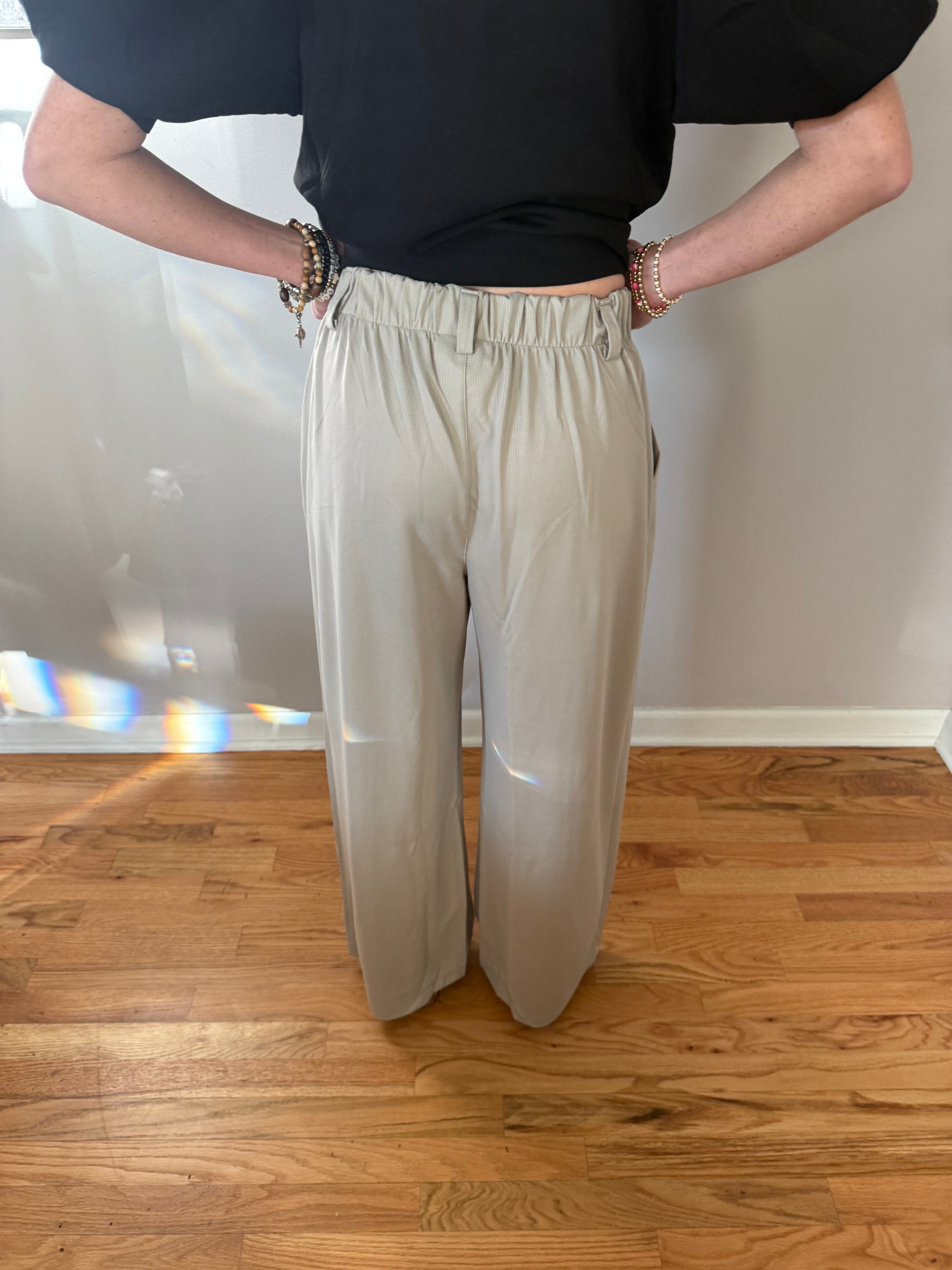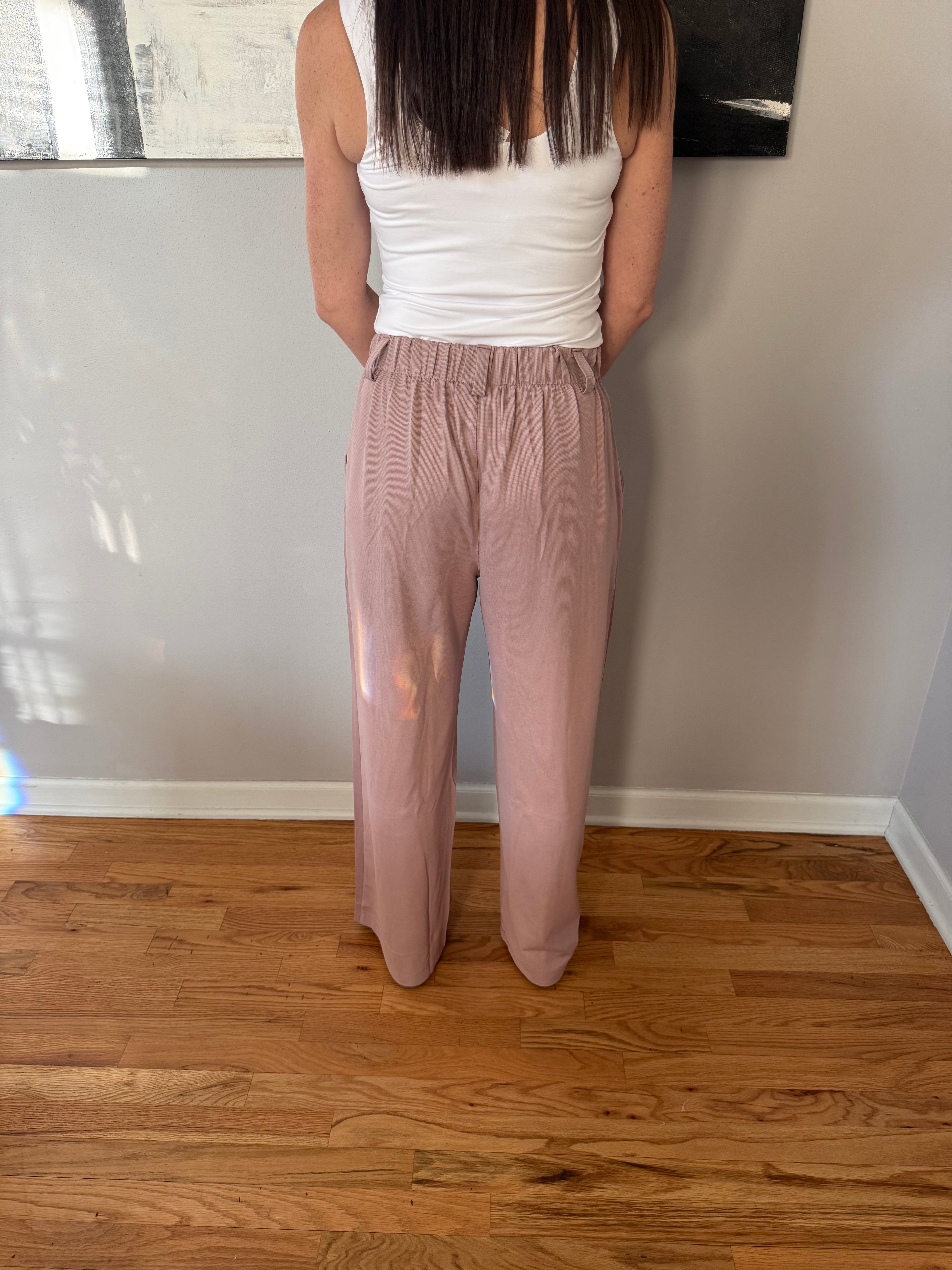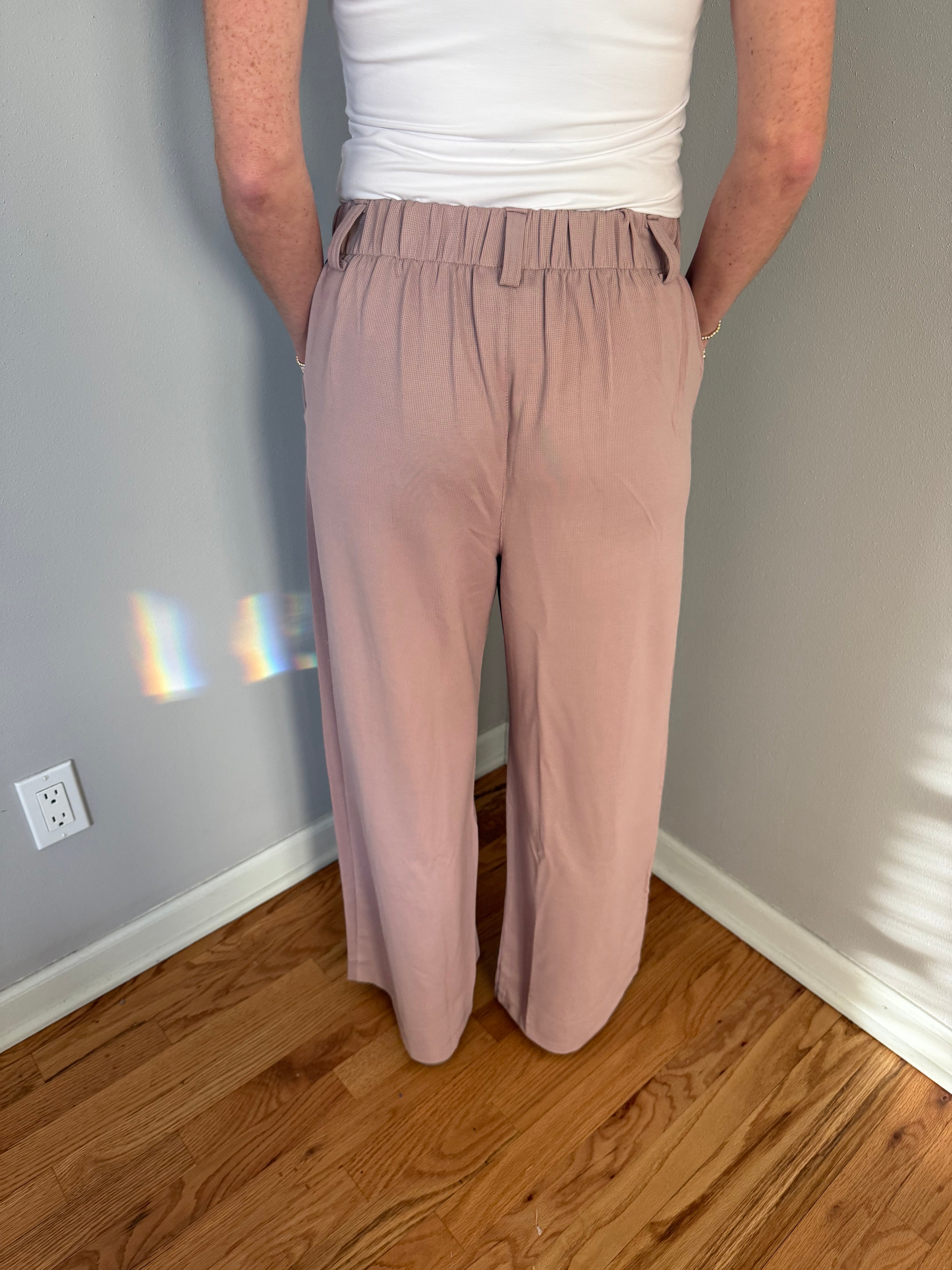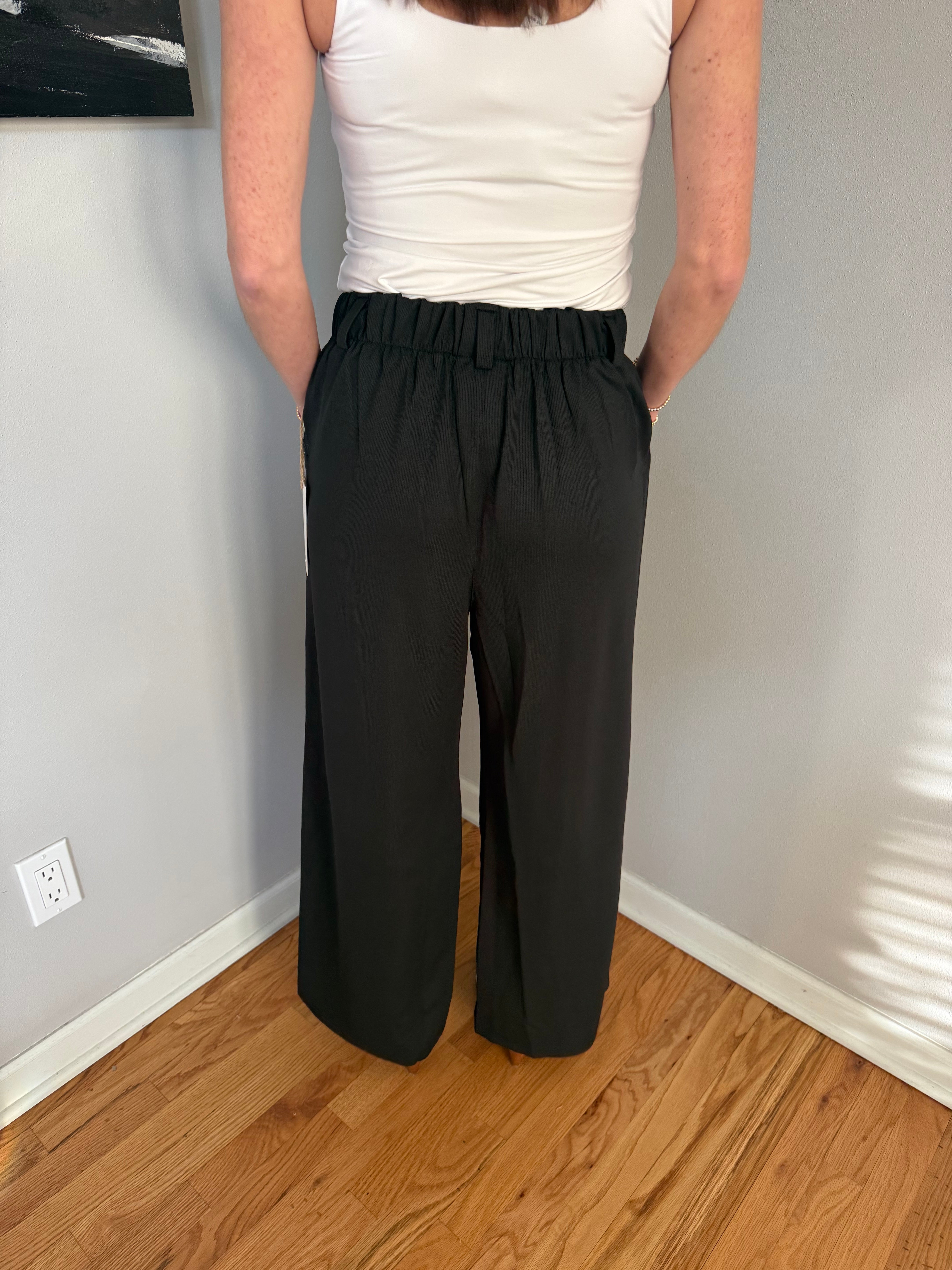 The pull-on silhouette features an elastic back waistband that moves with you, while the decorative fly and belt loops deliver a polished appearance. Micro waffle texturing adds subtle visual interest and dimension to the fabric. Practical side pockets keep essentials within reach, and the unlined construction provides breathability. The generous wide-leg cut offers a flattering, modern fit that works seamlessly from office to weekend occasions.