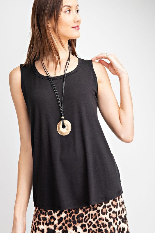 Sleeveless Basic Everything Tank - Mix and Match with any style! Scoop hem in the back - runs longer to cover the bottom.