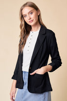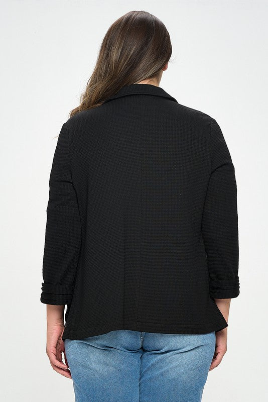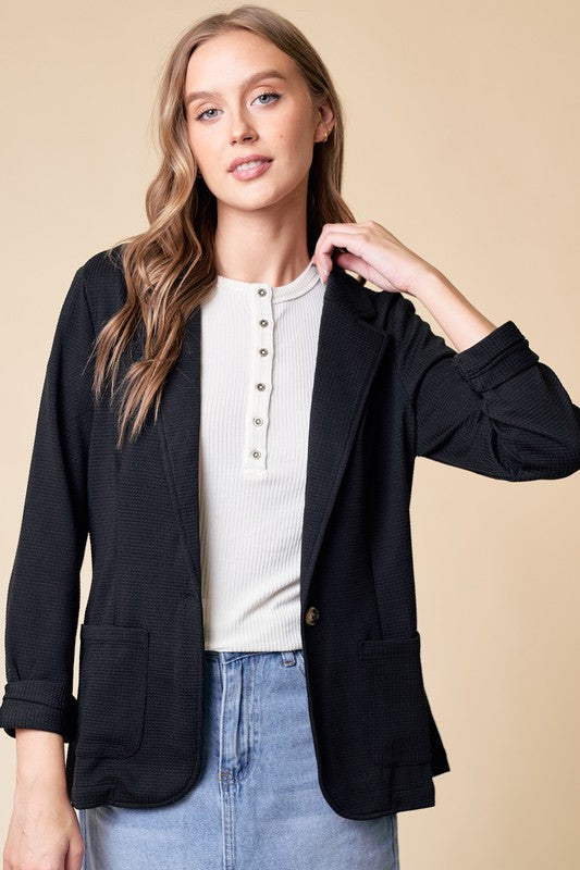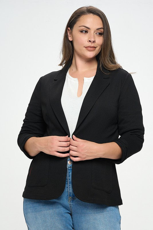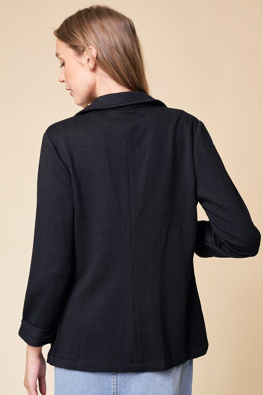 Black Shirred Sleeve Textured Blazer