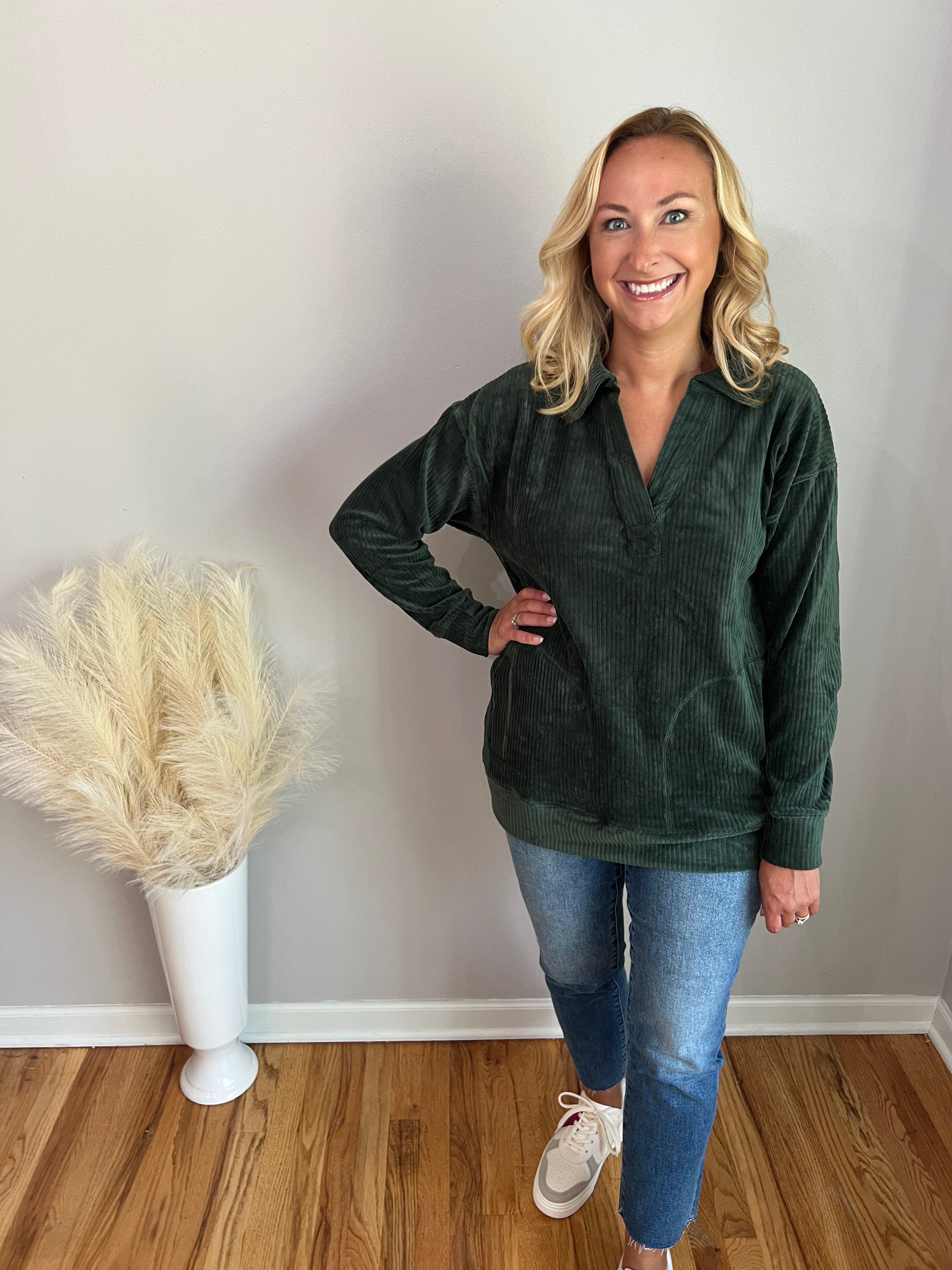Deep Forest Collared Corduroy Pullover