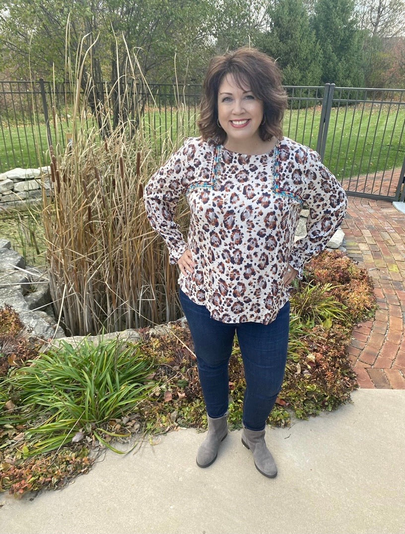 Leopard Top w/ Embroidered Detail
