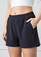 **Matching Jacket sold separately. Pull on athleisure shorts with elastic waistband.