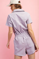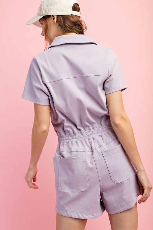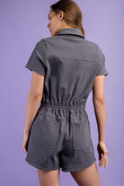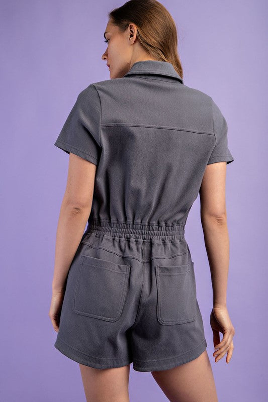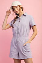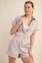 Made from elastic cotton fabric, this casual chic romper features a stylish collar, ensuring a perfect blend of comfort and casual elegance. Embrace a casual yet chic look effortlessly with this versatile romper, a must-have for your fashionable wardrobe.
