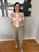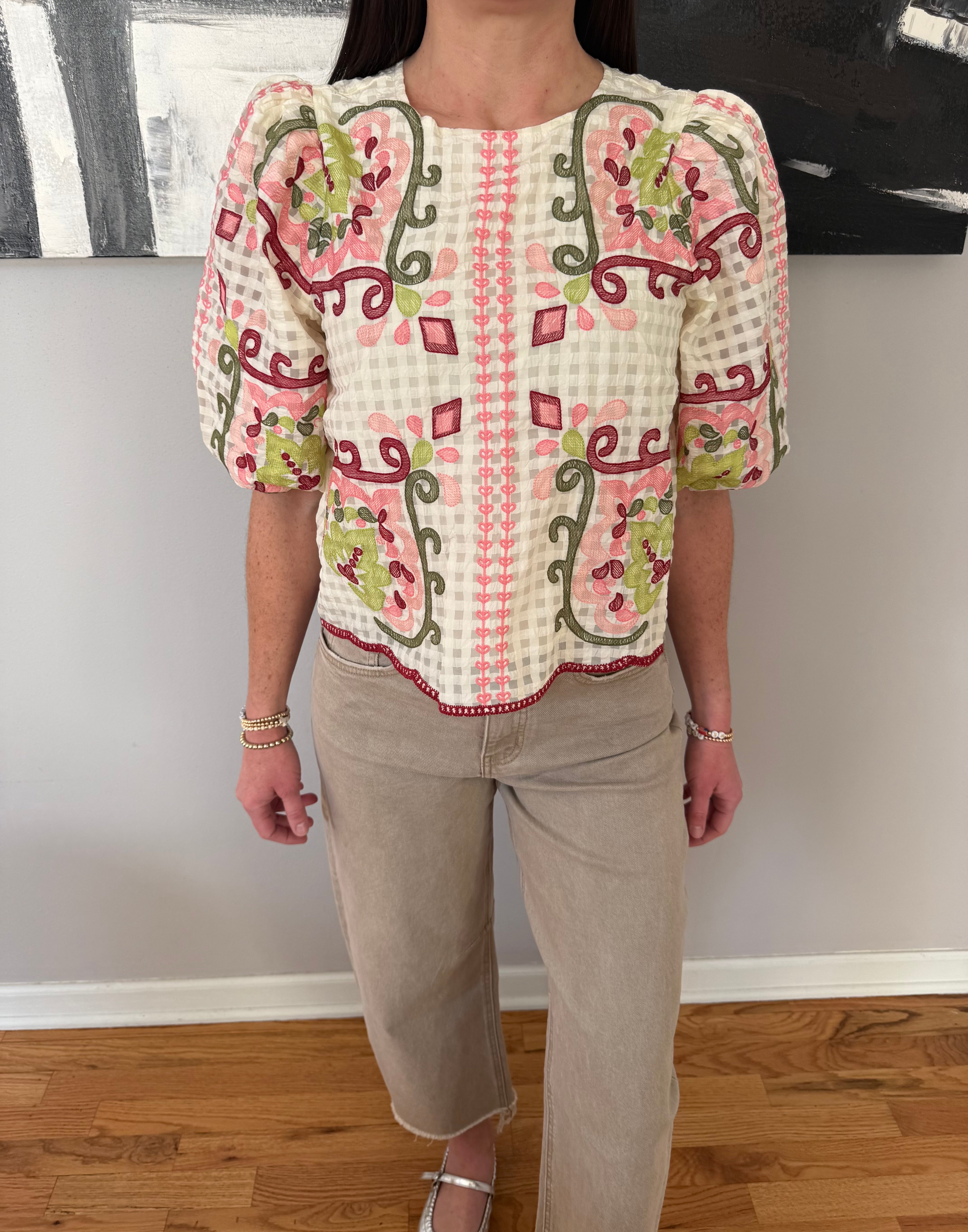 Why Kasey picked this: Cute and Comfy. On trend with the embroidery detail. Matching shorts coming soon!