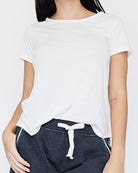 Super soft and lightweight basic tee. Love the feeling of these. Amazing layering piece. High quality. This brand is also sold at department stores such as Von Mauer.
