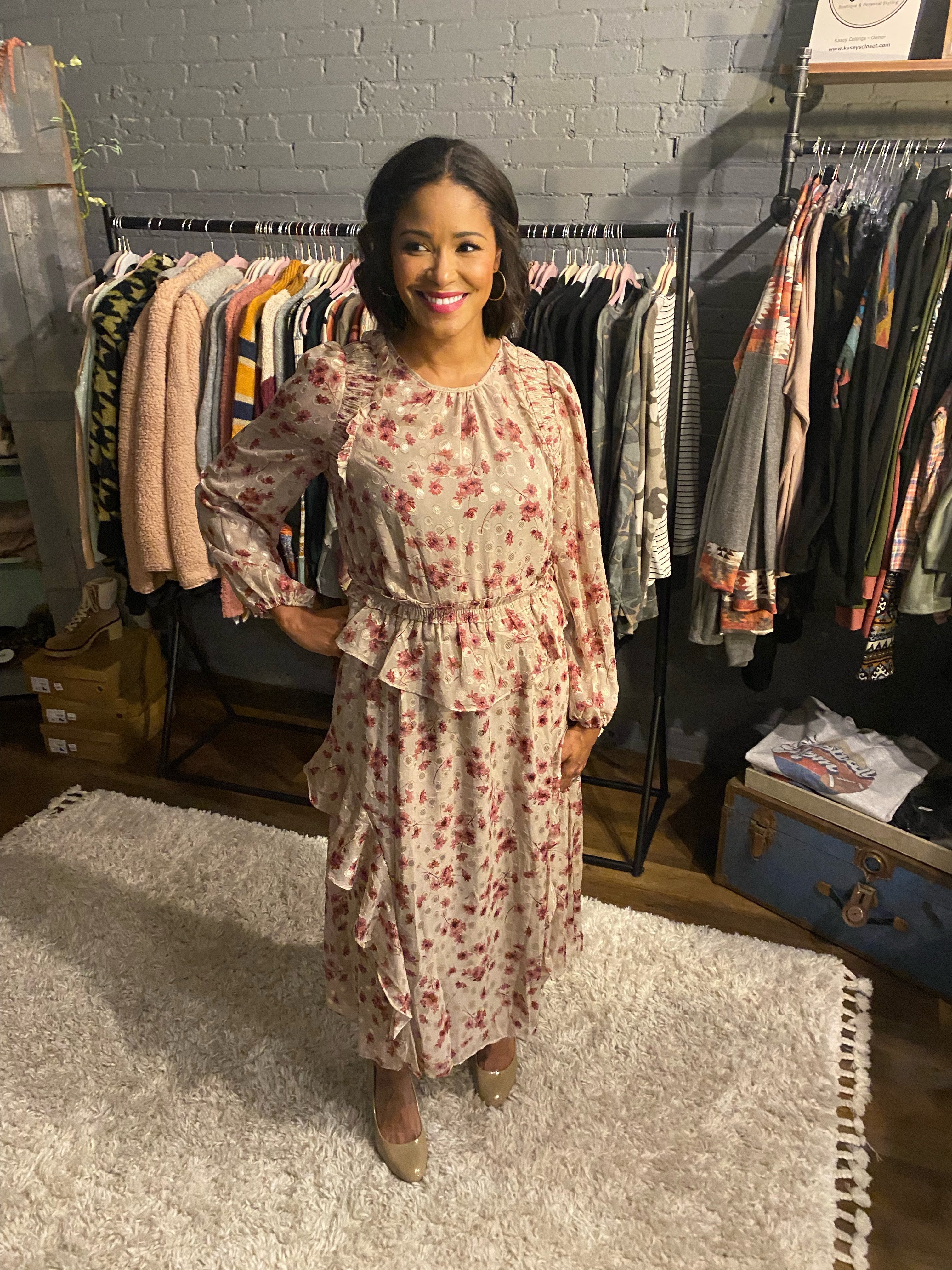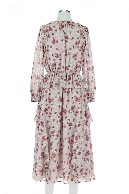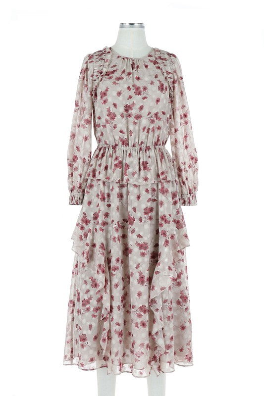 Fall Floral Print Midi Length Dress