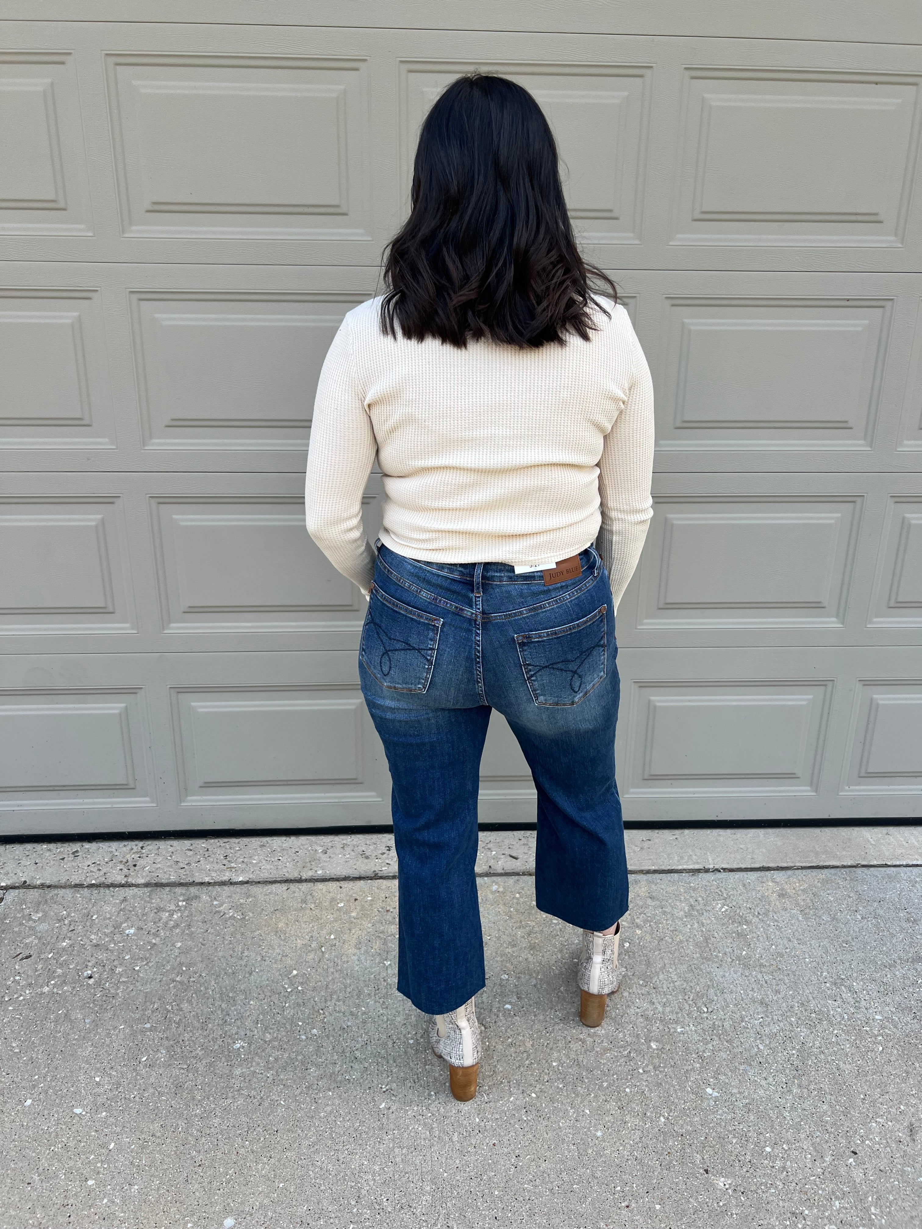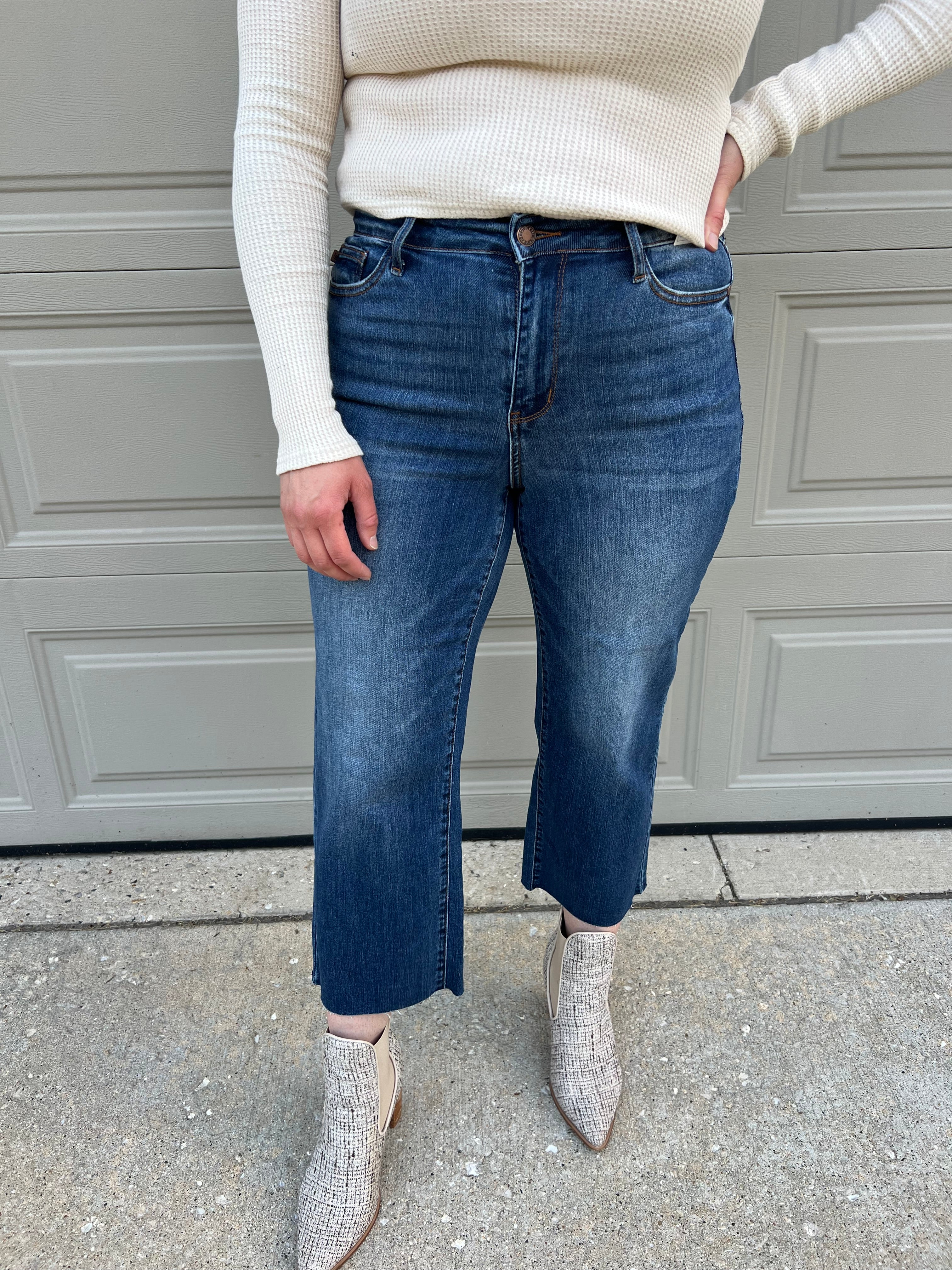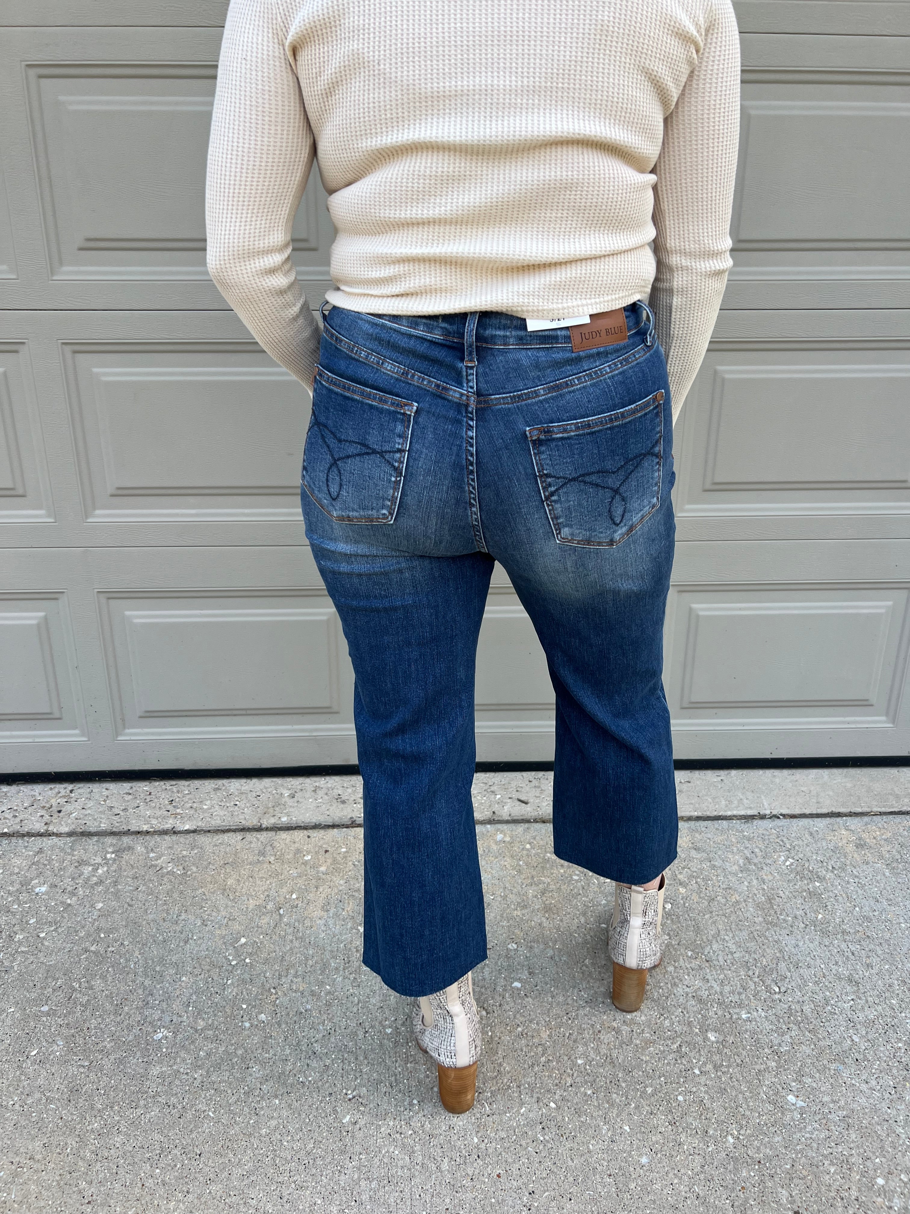 Judy Blue HW Back Pocket Embroidery Crop Wide Denim