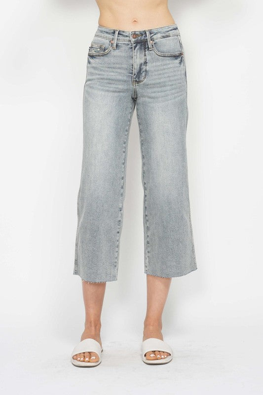 Judy Blue Mid-Rise Tummy Control Raw Hem Crop Wide