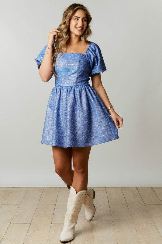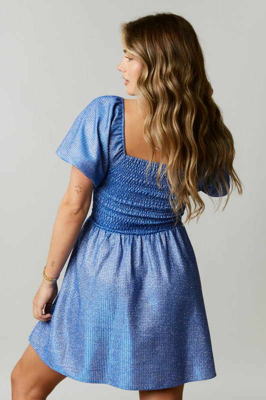 This dress is worth every penny. SO adorable and easy to wear. Smocking in the back for more flexibility. Glitter in the fabric for a shimmery look.