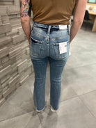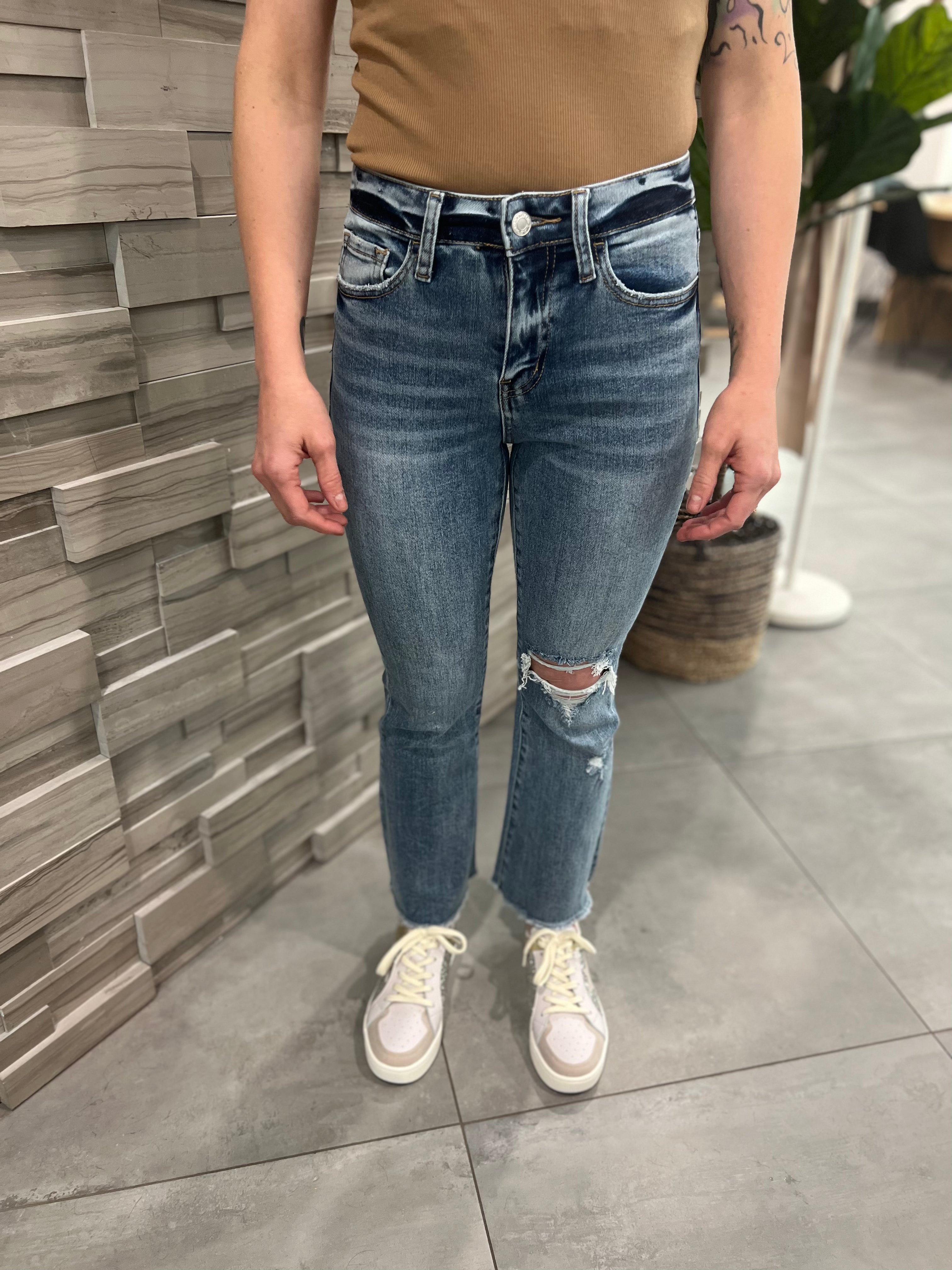Comfort Stretch Denim, High Rise, Ankle Length, Straight Flare