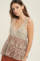 Paisley Babydoll Top with Crochet Lace Trim Detail