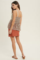 This gorgeous tank is so fun to pair with denim shorts or pants! Smocking in the back allows for a comfort fit!