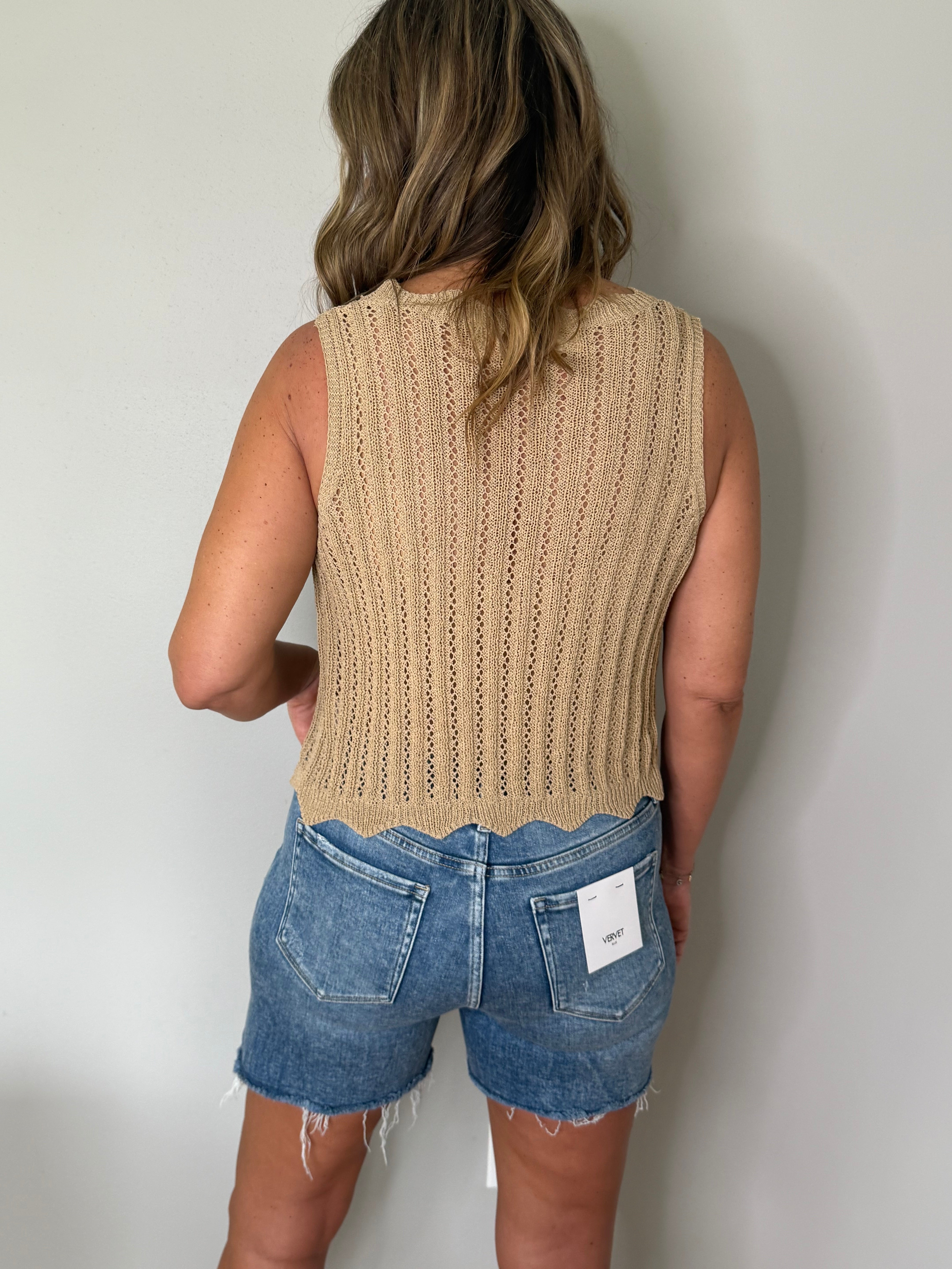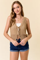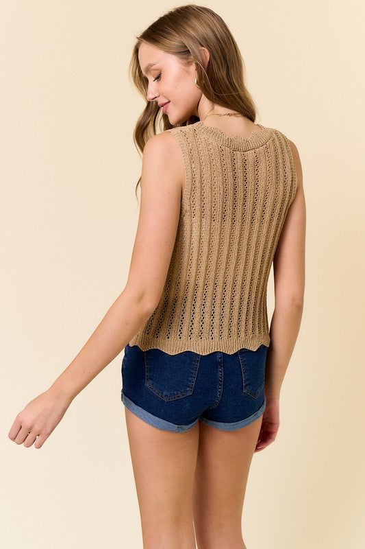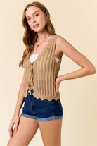 Scallop Rib Edging V-Neck Tie Front Knitted Vest