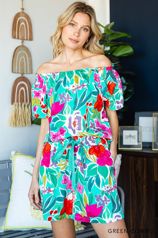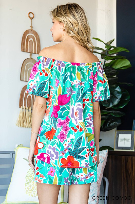 Soft Poly Multi Floral Print Off Shoulder Top