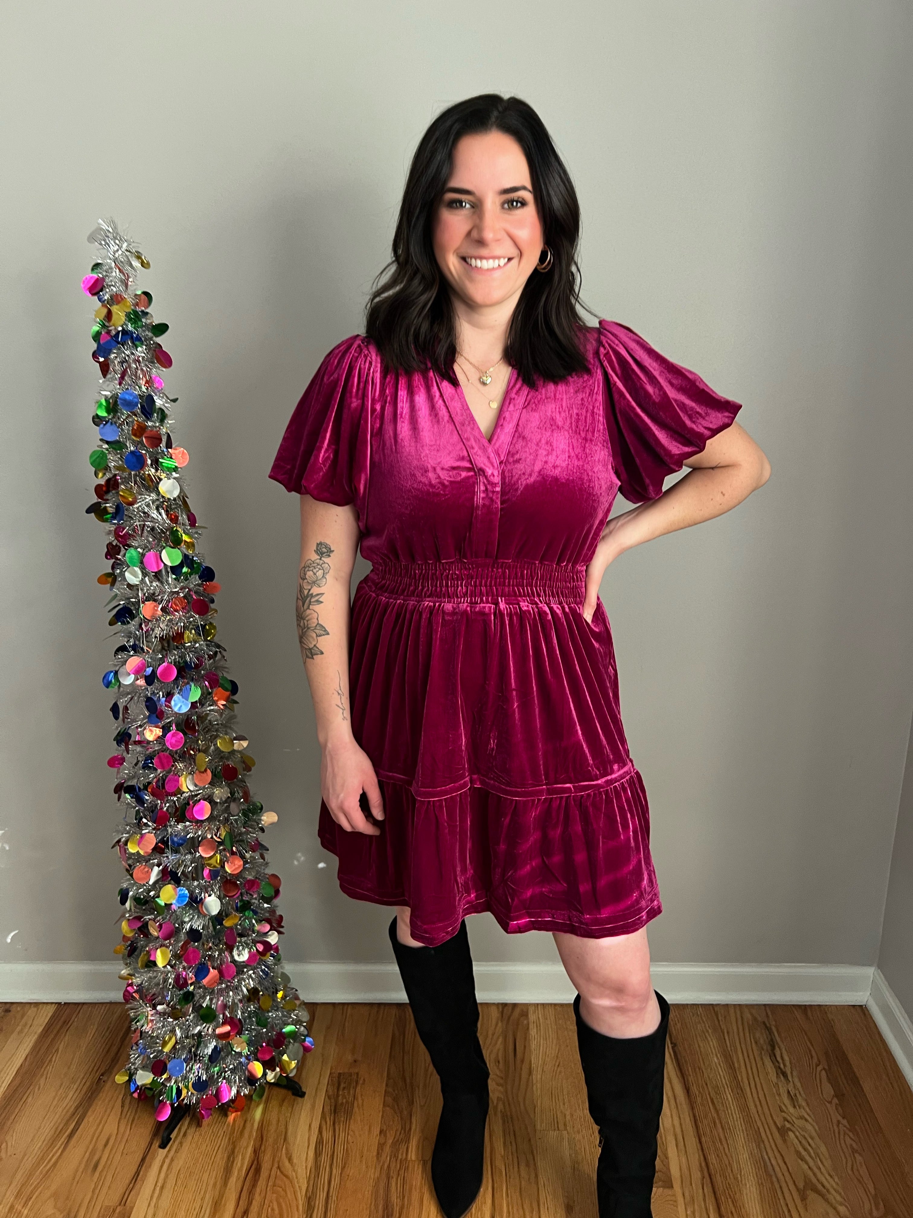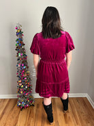 Solid Velvet Tiered Dress with Smocked Waistband
