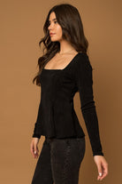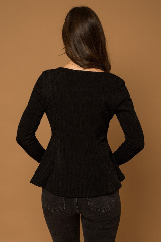 A very flattering black top that can be worn with any bottom!