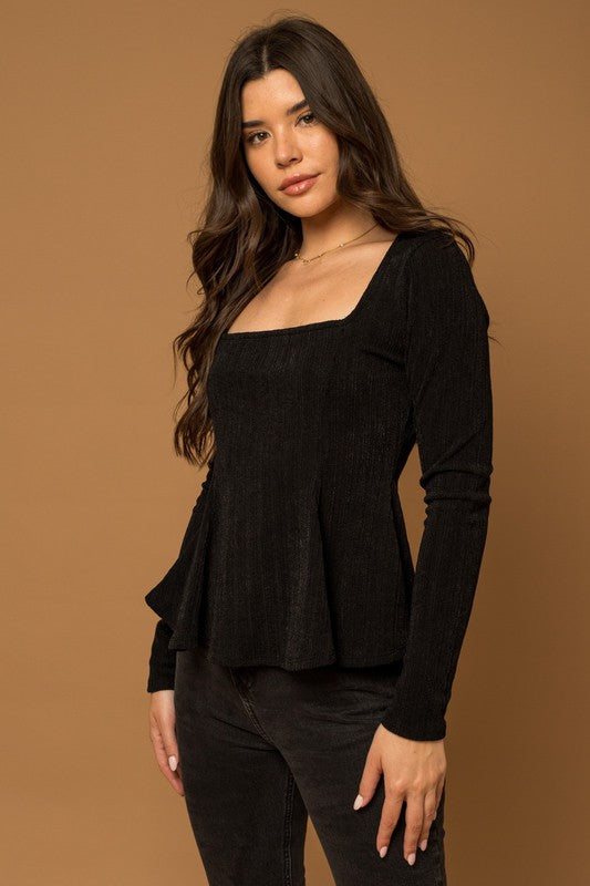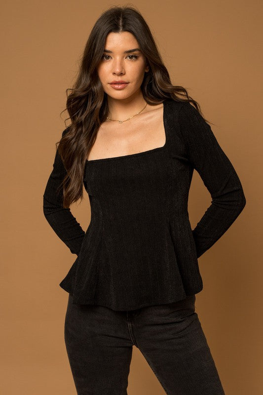 Square Neck Flare Ribbed Top