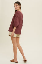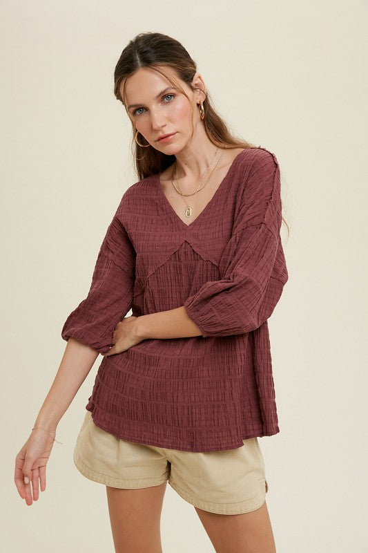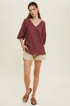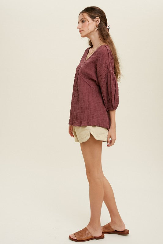 Adorable light weight top with raw edge detail.