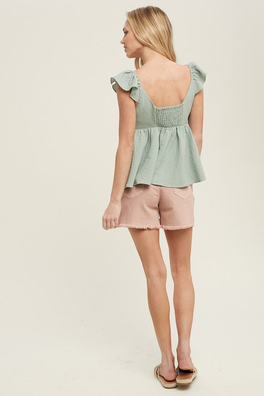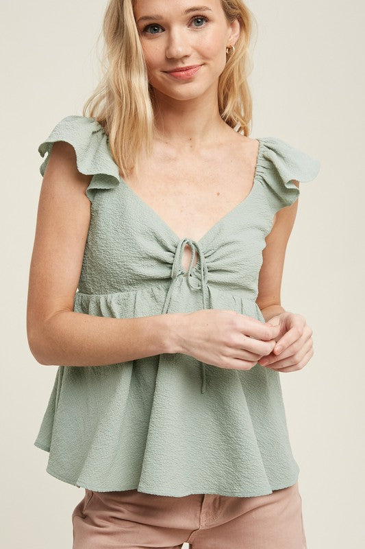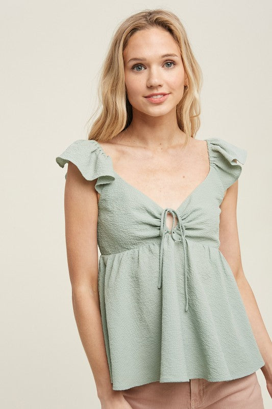 Textured Front-Tie Detail Top