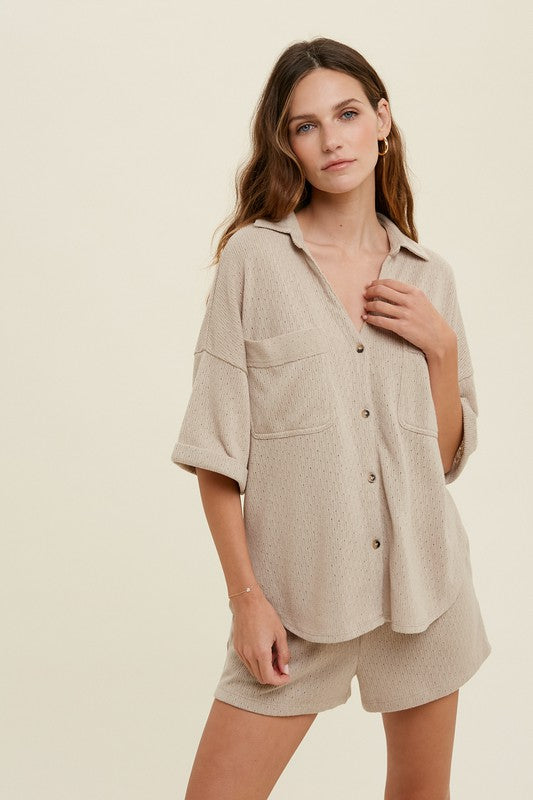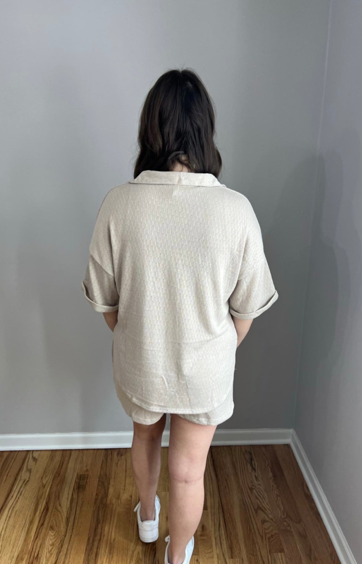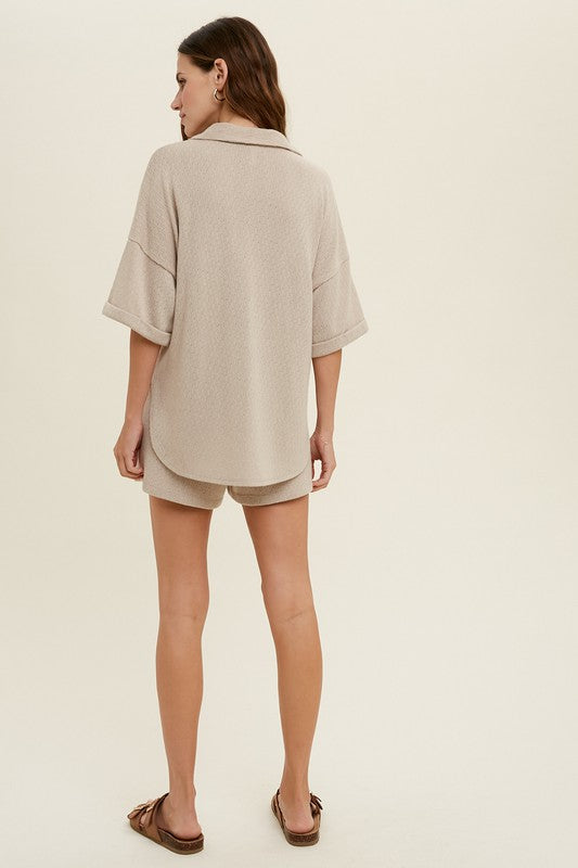 Functional buttons and front pockets, cuffed sleeves and side slits, Drawstring and elastic waistband. Comes as a set!