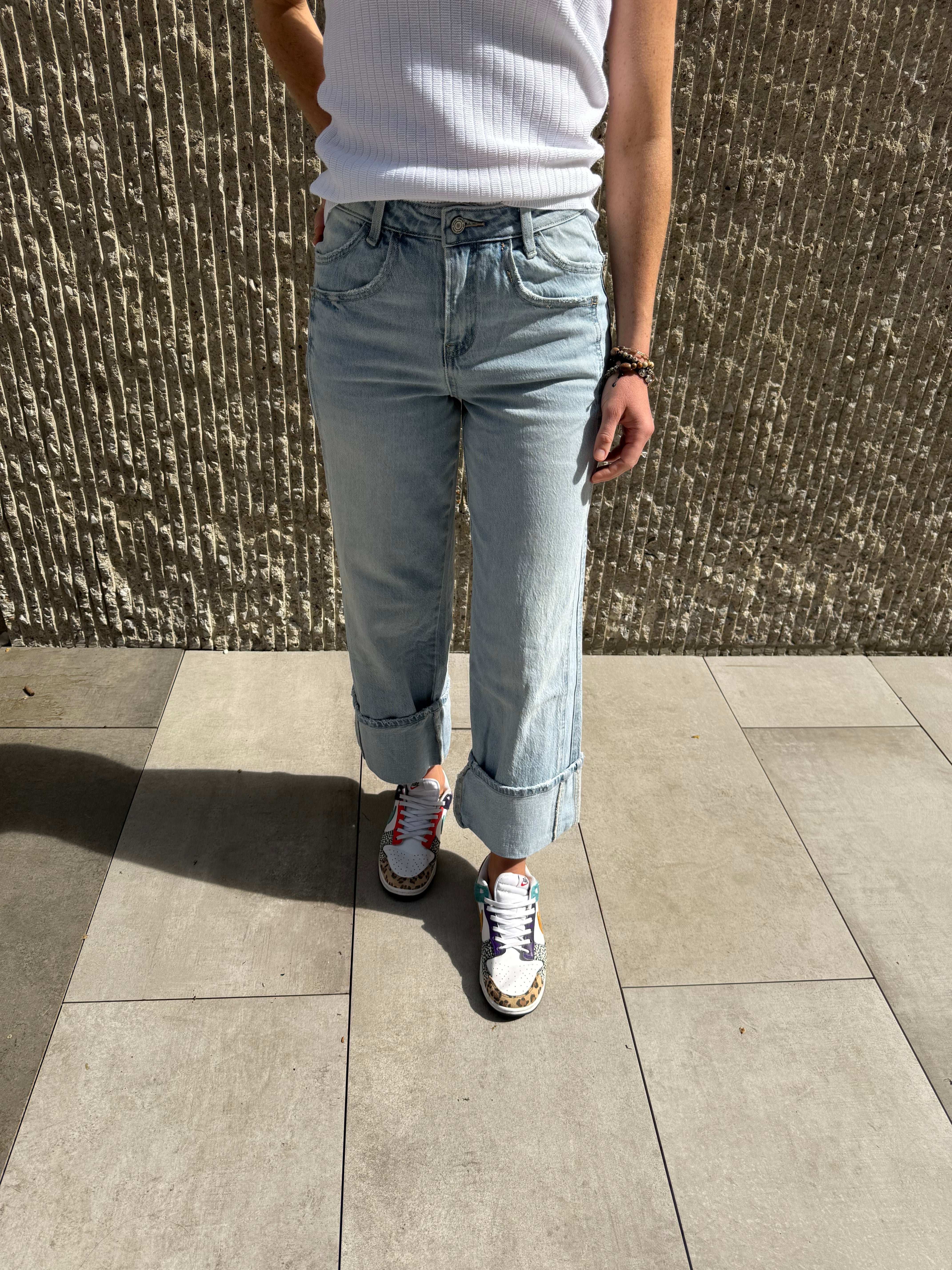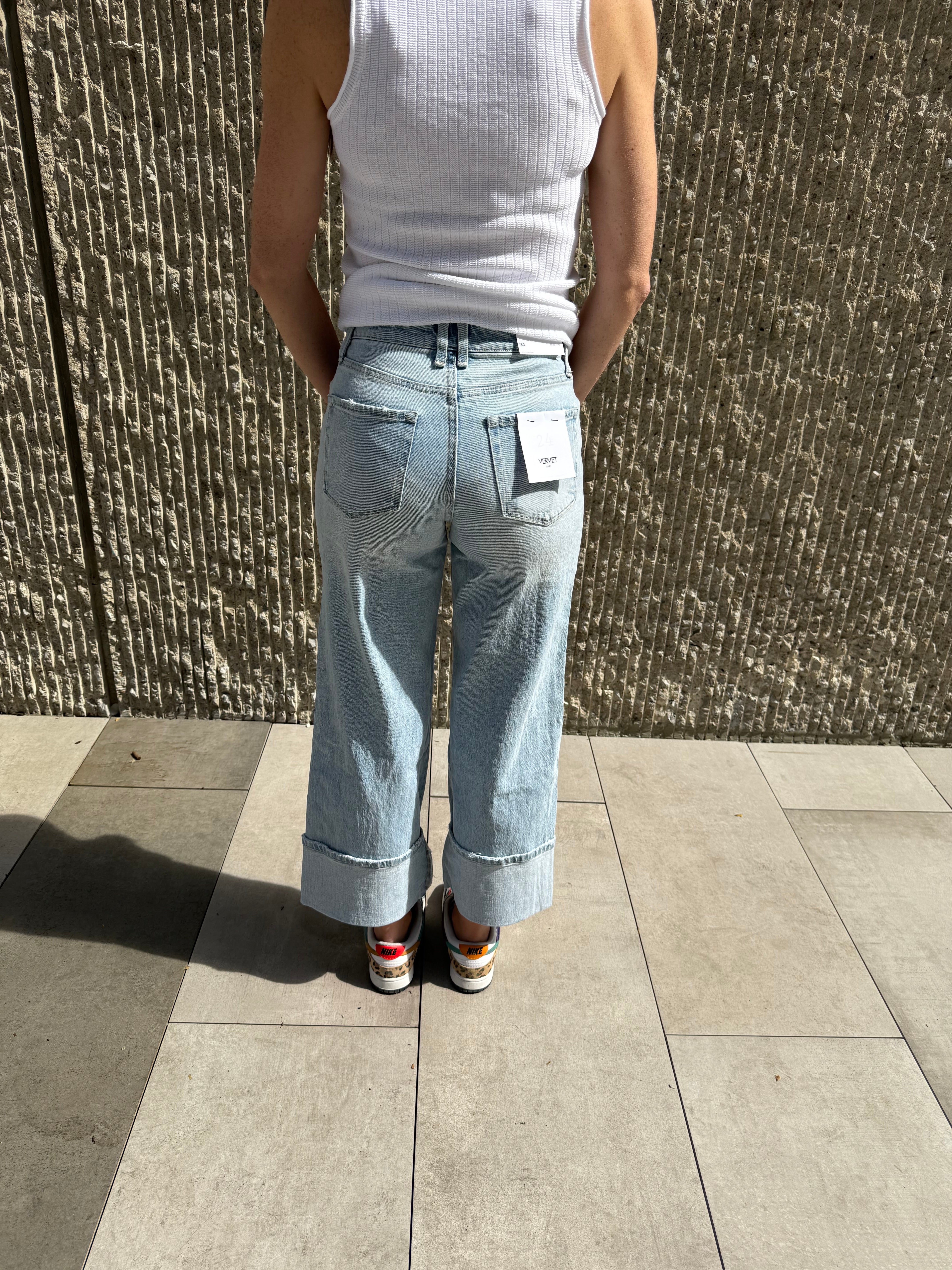 Vervet High Rise Cuffed Baggy Wide Denim