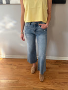 Vervet High Rise Raw Hem Ankle Wide Leg Jeans